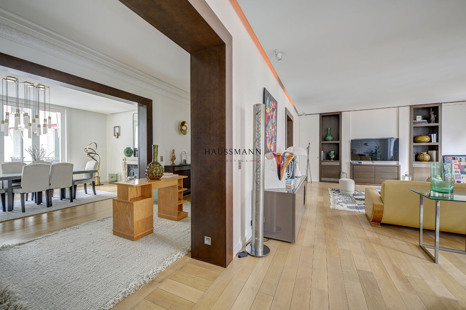 Situé rue de la Pompe, proche de lycée Janson-de-Sailly, au troisième étage d'un superbe immeuble haussmannien, cet élégant appartement familial et de réception de six pièces, bénéficiant d'un accès privatif sur le palier, offre des prestations haut de gamme. Entièrement rénové par un architecte de renom avec des matériaux d'exception, traversant et baigné de lumière, il se compose d'une vaste galerie d'entrée ouvrant sur une double réception, d'une salle à manger et d'une cuisine séparée, aménagée et dînatoire. La partie nuit comprend une spacieuse suite parentale avec dressing et salle d'eau, wc, ainsi que deux autres chambres, chacune dotée de sa propre salle d'eau. Une buanderie et un toilette invités complètent le plan parfaitement optimisé. Deux caves ainsi qu'un cellier complètent cet appartement lumineux et rare sur le secteur. Hauteur sous plafond de 3 mètres. Parquet, très belles moulures et chemines en marbre d'origine. Honoraires à la charge du vendeur. Copropriété de lots. Les informations sur les risques auxquels ce bien est exposé sont disponibles sur le site Géorisques: www.georisques.gouv.fr Copropriété de 24 lots - dont 24 lots habitation. (Pas de procédure en cours). Charges annuelles : 8000 euros.