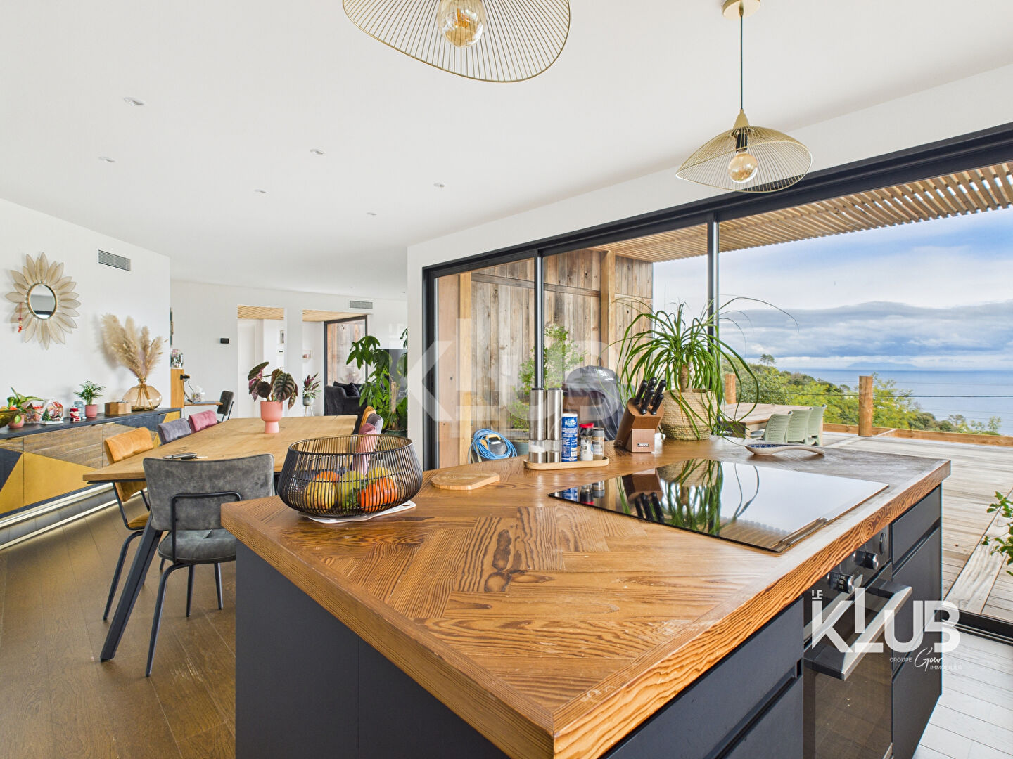 Située sur la route supérieure de Cardo à Bastia, cette villa achevée fin 2021 offre une surface totale d'environ 168 m², édifiée sur un terrain de 511 m². Elle se distingue par ses prestations haut de gamme. De très belles ouvertures permettent une luminosité exceptionnelle et sa vue mer absolument imprenable. La partie principale, un T4, se compose d'un vaste séjour bénéficiant d'une climatisation gainable, ouvert sur une grande terrasse orientée est/sud-est et sur la piscine, offrant un cadre de vie calme et privilégié. La cuisine aménagée et entièrement équipée s'intègre harmonieusement à l'espace de vie. La maison dispose de trois chambres, dont une suite parentale avec dressing, ainsi qu'une seconde chambre également pourvue d'un dressing. Une salle de bain, une salle d'eau et des rangements complètent l'ensemble. Un T2 indépendant vient s'ajouter à cette propriété, idéal pour recevoir, pour un projet locatif ou pour une activité professionnelle. La villa, lumineuse et fonctionnelle, bénéficie d'un environnement paisible tout en restant proche de toutes les commodités. Un bien rare sur le secteur, offrant confort, prestations modernes et cadre exceptionnel. Jean-Benoit CASANOVA (EI) Agent Commercial - Numéro RSAC : 888 412 772 - Bastia.