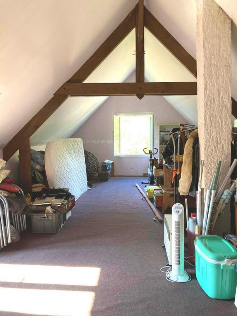 Le calme et la nature vous attendent sur cette belle propriété de campagne avec près de 3 hectares de terrain entièrement cloturés. Des chemins forestiers démarrent au pied de cette parcelle verdoyante. Les commodités de la ville restent proches. La maison familiale de 140 m² construite en 1976, rénovée durant les dernières années (y compris la toiture avec des tuiles du pays), offre un séjour lumineux de 43 m² avec une cheminée permettant de chauffer toute la maison et un accès direct à une grande terrasse de 100 m² et sa vue imprenable sur le domaine. Pour compléter le rez-de-chaussée, une cuisine indépendante avec accès extérieur, deux chambres, un dressing, une salle d'eau modernisée et un WC indépendant. A l'étage, une grande chambre supplémentaire + un vaste espace de 45 m² isolé, chauffé et aménageable selon votre imagination. Le sous-sol entier de presque 100 m² abrite un grand garage, une cave, une buanderie et un atelier. Les consommations sont très basses pour cette maison à tous points de vue : - La cheminée insert à bois avec son circuit d'eau intégré alimente tous les radiateurs et une pompe à chaleur récente permet de prendre le relai si besoin - Le chauffe-eau thermodynamique récent et l'alimentation en eau grâce au puits sur une nappe phréatique (accès au réseau d'eau de ville si besoin mais inutile jusqu'ici) sont également très appréciables - L'isolation de la maison en trois couches avec brique plâtrière, laine de roche avec vide d'air et parpaing Sur le terrain, plusieurs prestations complètent encore ce bien : - Portail électrique à l'entrée - Une grande marre de 300m² - Box de 31 m² pouvant servir pour des chevaux - Une vaste cour permettant le stationnement de véhicules - Une dépendance pour accueillir d'autres animaux ou du matériel - Un permis de construire a été validé pour un hangar de 50m2 et l'impôt de 5 000 euros est déjà payé