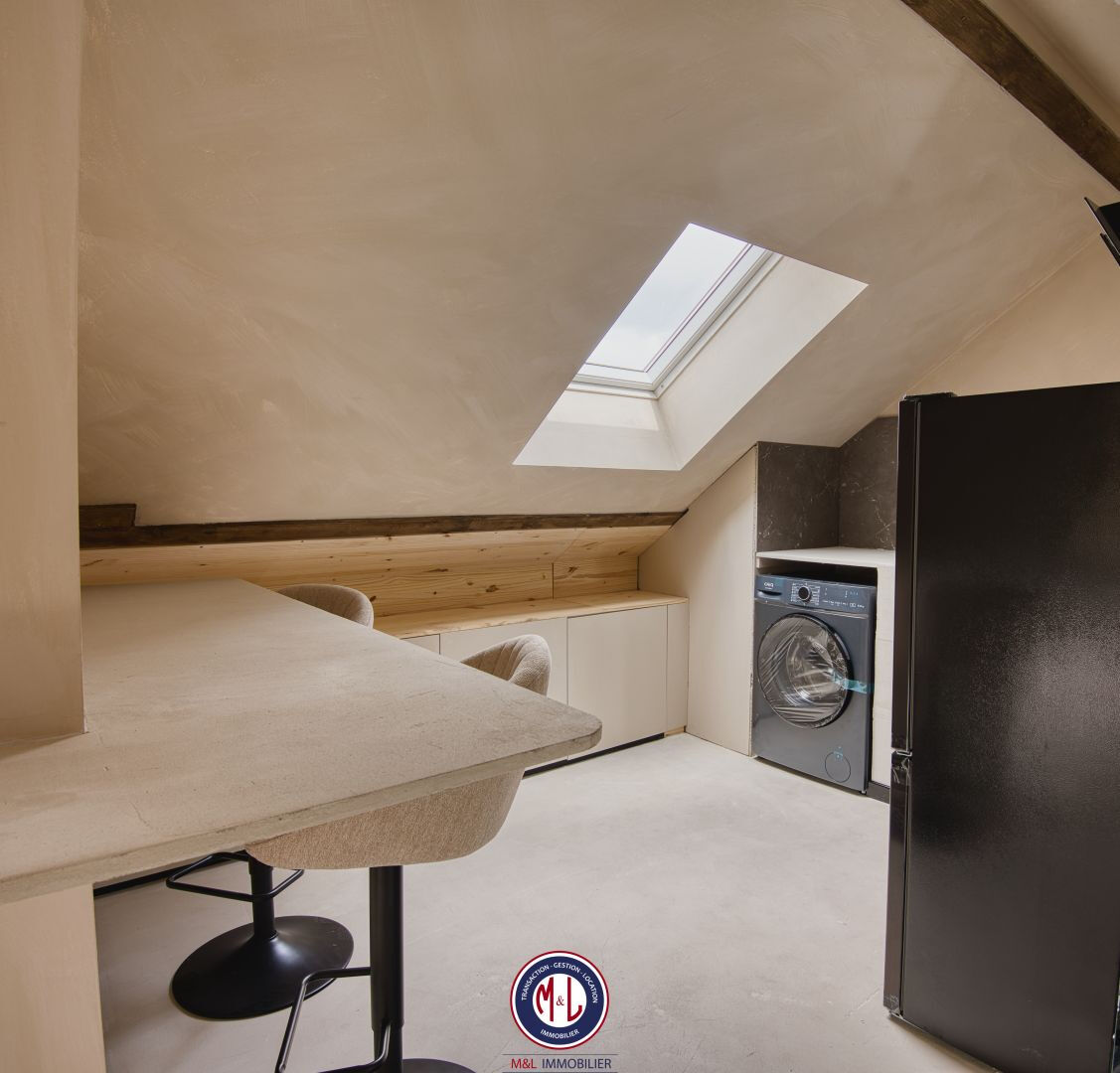Situé rue du général Franiatte à Montigny Les Metz, Au 5ème et dernier étage (sans ascenseur) d'un petit immeuble, ce T2 entièrement meublé de 31.07 m² loi Carrez (46.25 m² au sol) vous séduira par ses volumes, sa rénovation soignée et sa situation idéale. L'appartement s'ouvre sur une belle pièce de vie traversante avec climatisation réversible pour un confort optimal été comme hiver. La cuisine ouverte, totalement équipée (réfrigérateur, four, plaque 2 feux, hotte, machine à laver) , s'intègre parfaitement dans un espace à la fois fonctionnel et épuré. bénéficiez également du chambre ainsi qu'une salle d'eau avec wv Une cave vient compléter le bien. Une place de stationnement privé est également disponible pour un supplément de 50 euros / mois DPE: C chauffage par pompe à chaleur loyer : 650 euros + 50 euros de charges (communs, entretiens pompe à chaleur, TEOM) dépôt de garantie : 2 mois de loyer hors charge honoraires agence : 341.77 euros (dont 93.21 euros pour l'état des lieux d'entrée)