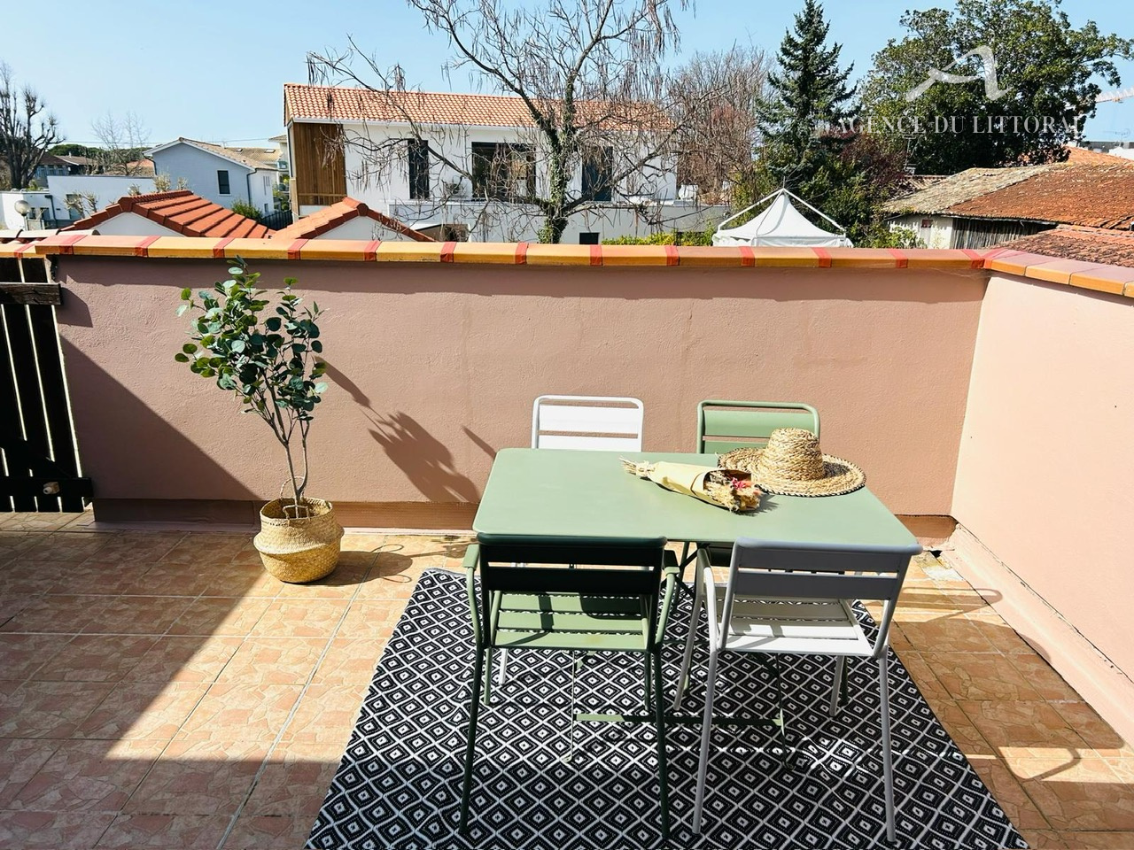 L'Agence du littoral vous propose ce magnifique appartement d'une surface habitable de 45,23 m2 situé au premier étage dans une petite copropriété horizontale sans ascenseur au coeur du centre ville à 100 mètres de la plage. Il se compose d'une pièce à vivre, une cuisine équipée avec un espace repas donnant sur une grande terrasse sans vis à vis de 19 m2 , une chambre, une salle d'eau et un wc. Pas de place de parking