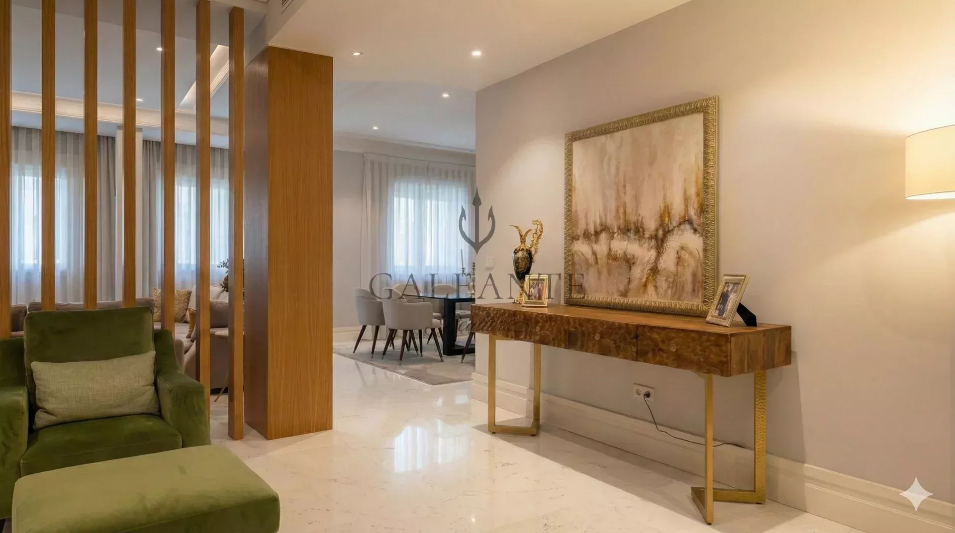 Galeante Madrid presents a spectacular, brand-new residence of exceptional scale in the heart of the exclusive Chamberí-Almagro district. Spanning an impressive 374 m² on the third floor of a distinguished corner building, this newly renovated apartment offers a rare abundance of natural light thanks to its all-exterior layout. The home opens into a grand entrance hall that leads to a magnificent social area featuring a reception room, a spacious living room, a formal dining area, and a stylish lounge bar, along with a guest toilet for entertaining. The separate, light-filled kitchen is designed for culinary excellence, featuring sliding cabinetry doors, high-end appliances, and a dedicated laundry area. The sleeping quarters comprise four double bedrooms, all boasting exterior views and built-in wardrobes; three are en-suite, including a luxurious master suite with a spacious walk-in closet and a bathroom with a bathtub. Finished with natural wood floors, motorized blinds, individual gas heating, and ducted air conditioning, the home ensures year-round comfort. Complete with concierge service, video intercom, a private garage, and a storage room, this property represents the pinnacle of luxury living near Madrid’s major thoroughfares and fine dining.