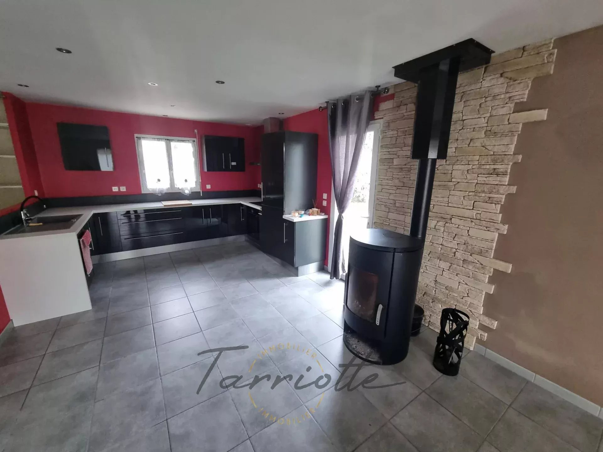 Elle se compose d’une spacieuse pièce de vie de 52 m² avec cuisine ouverte, bénéficiant d’un poêle à bois et d’une climatisation réversible, de 3 chambres, ainsi que d’un garage avec mezzanine, offrant un bel espace de rangement.