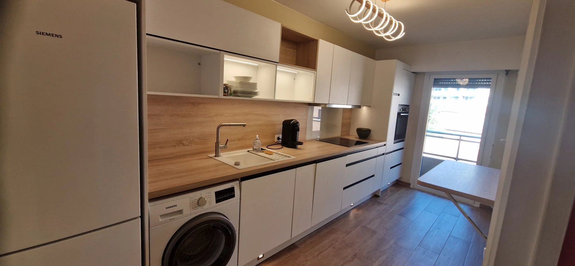 Dans résidence de standing, appartement loué meublé, de type 3 Pièces, composé d'un Hall d'entrée, Séjour ouvrant sur grande terrasse, 2 Chambres, Jolie salle de douche, wc indépendant. Cave. Parking en sous-sol.