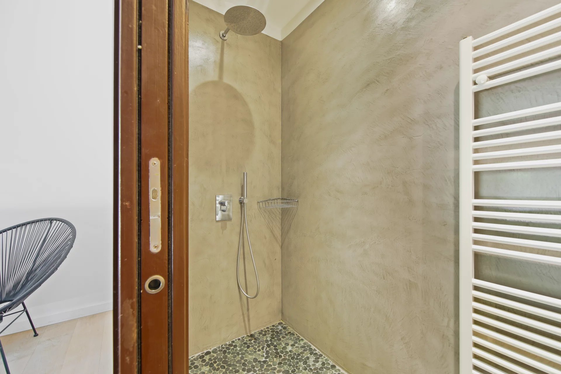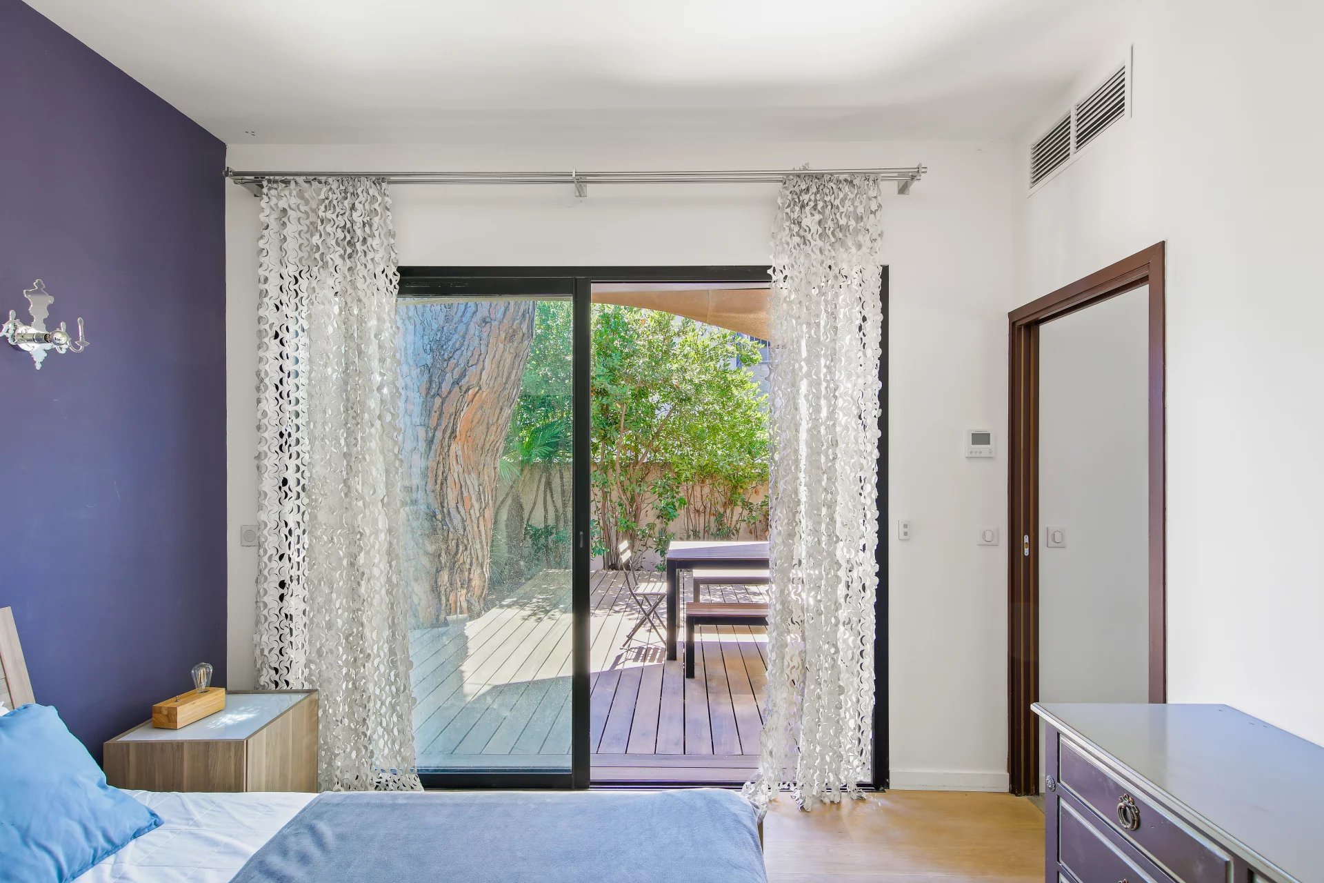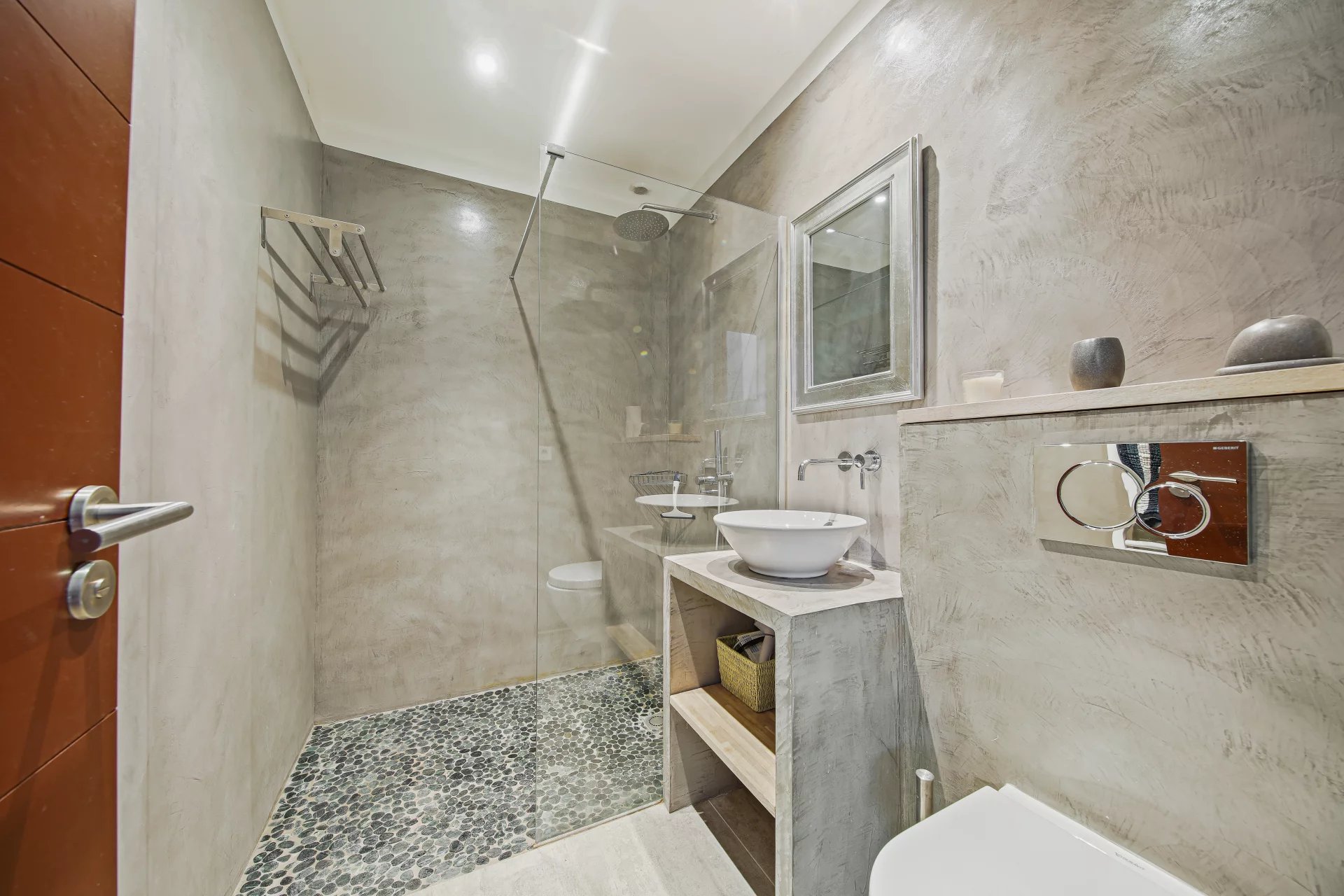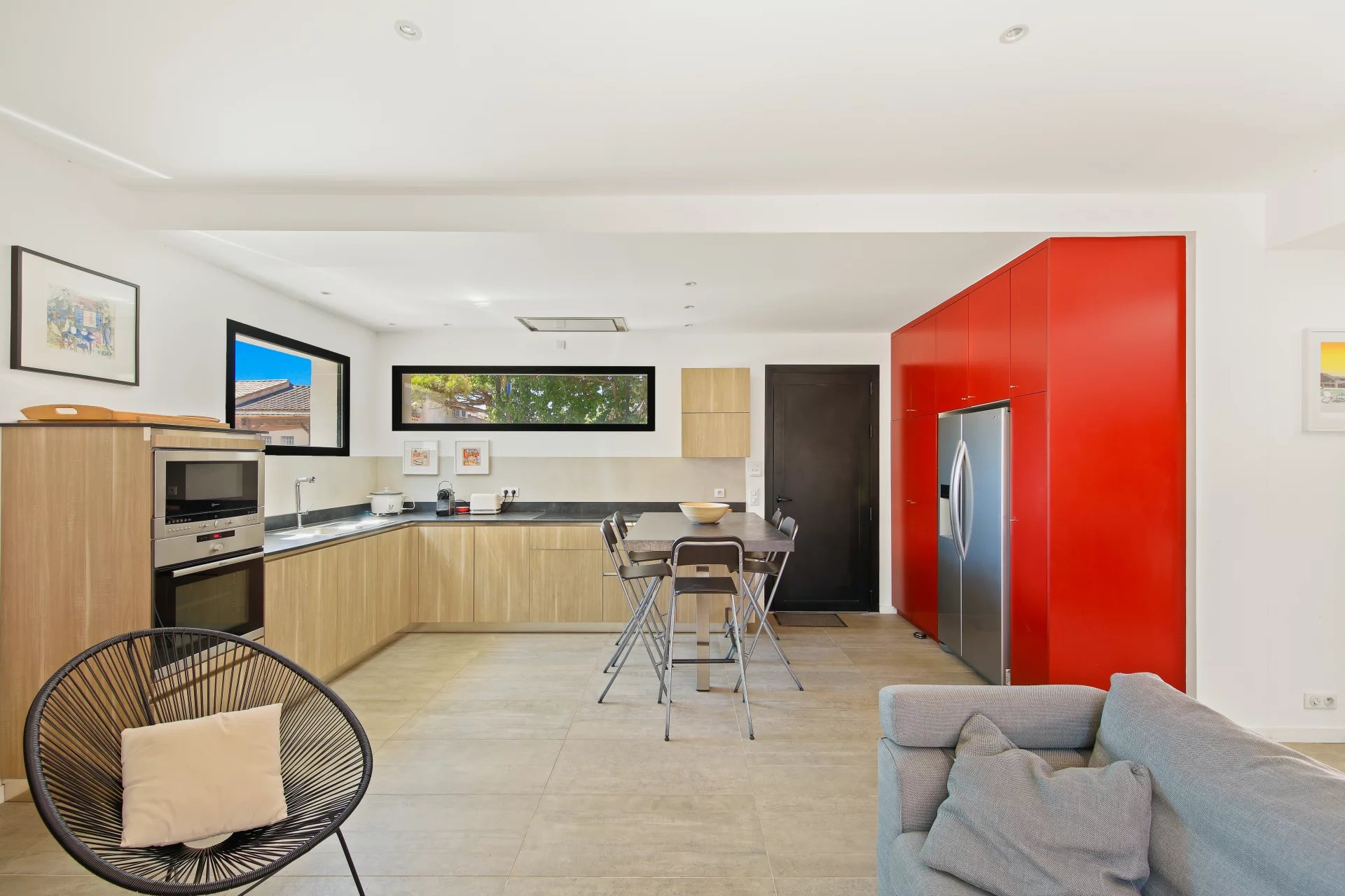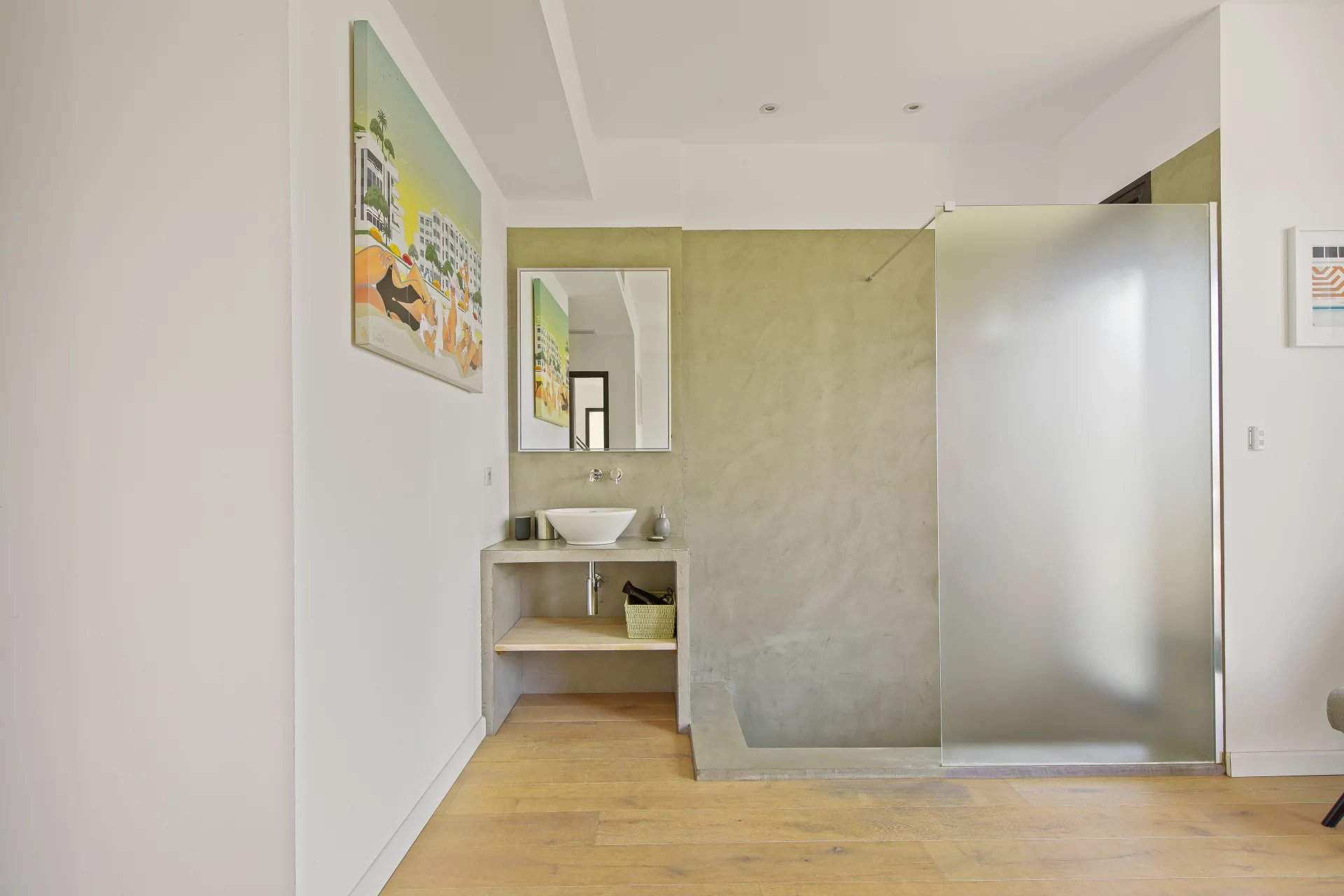 L'étage se compose d'un salon TV s'ouvrant sur une vaste terrasse bois et de la suite parentale avec salle de bains, dressing, bureau et un wc.