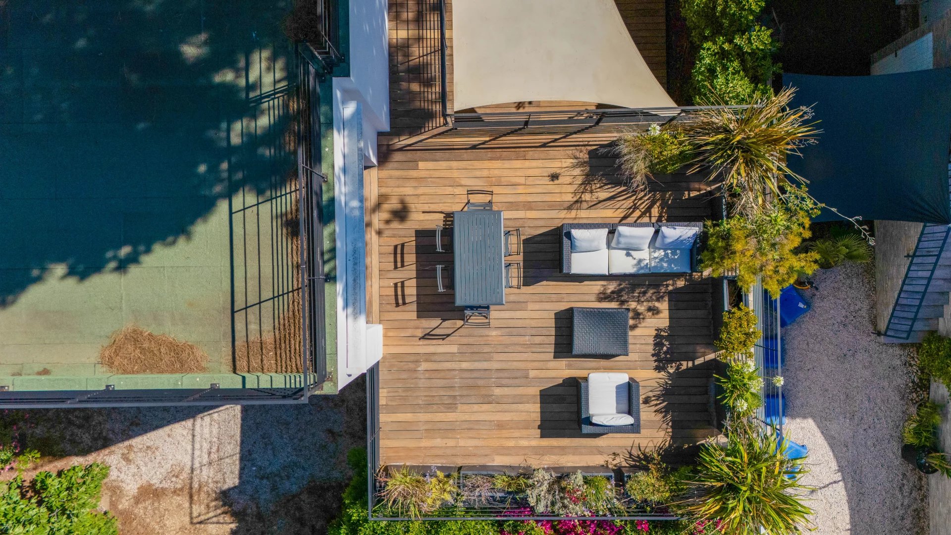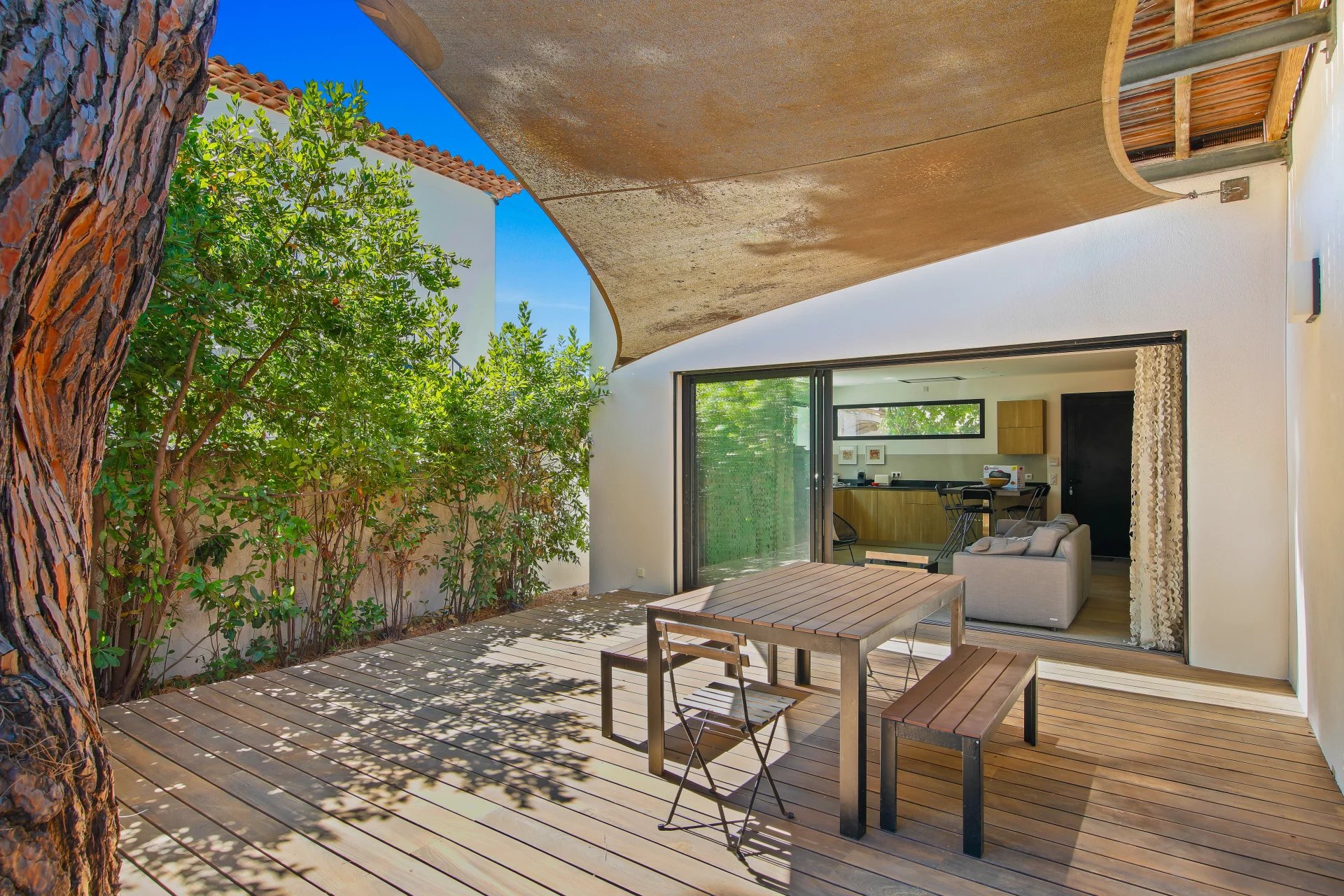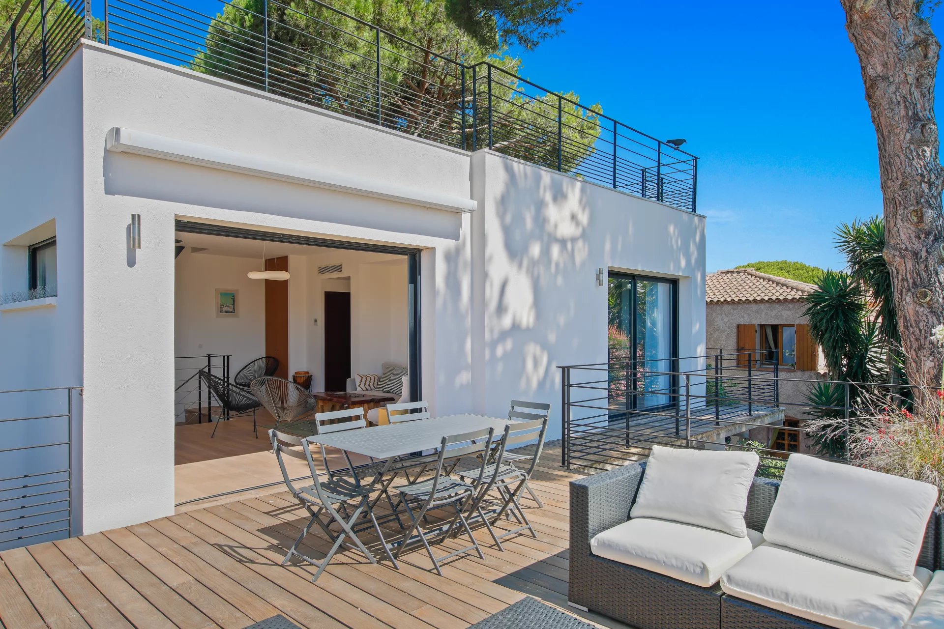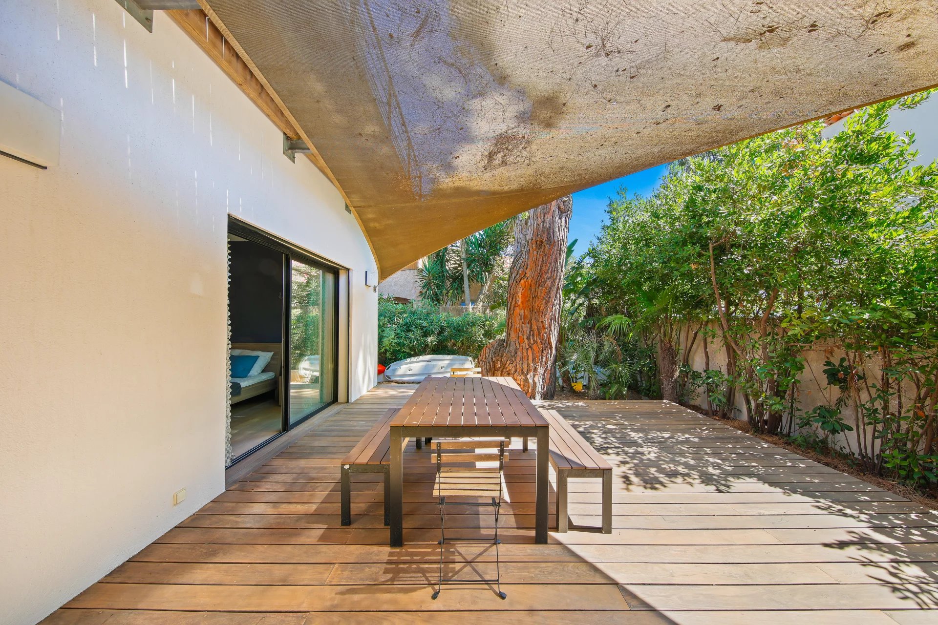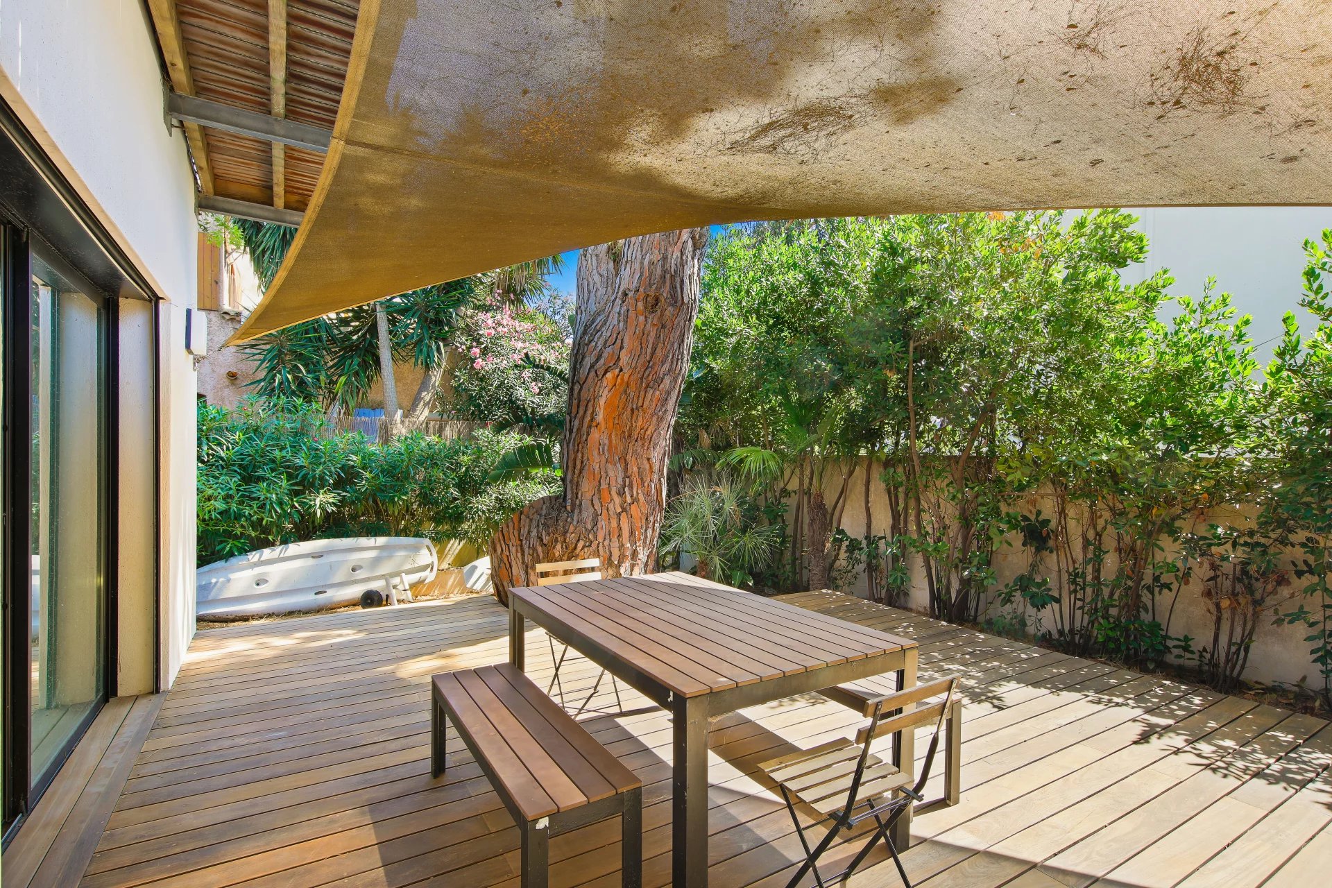 La villa Tartane se complète par un local buanderie et un local rangement, le tout édifié sur une parcelle de terrain plat de 368 m2 située à 50 mètres de la plage et moins de 100 mètres du port de l'Ayguade.