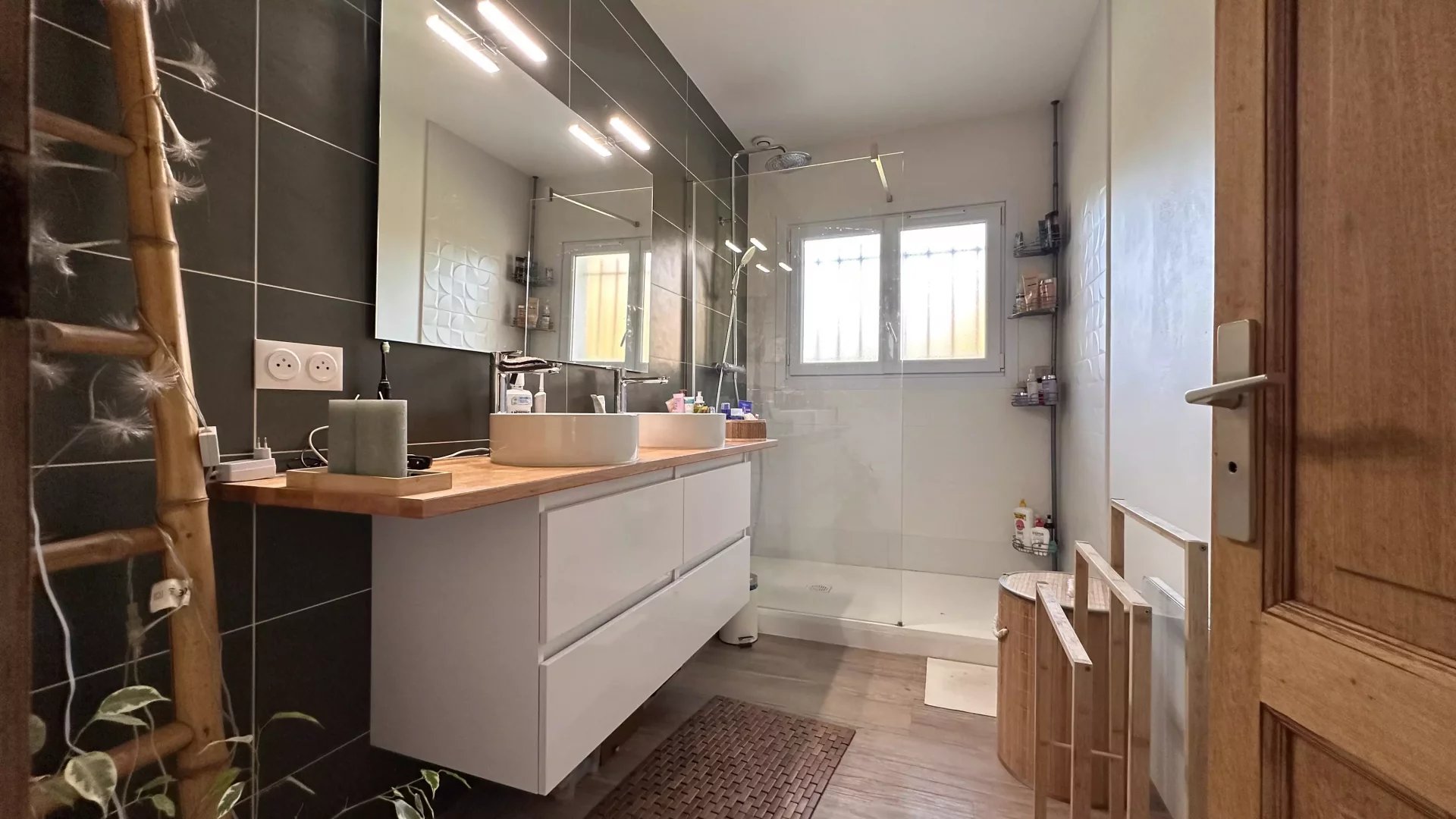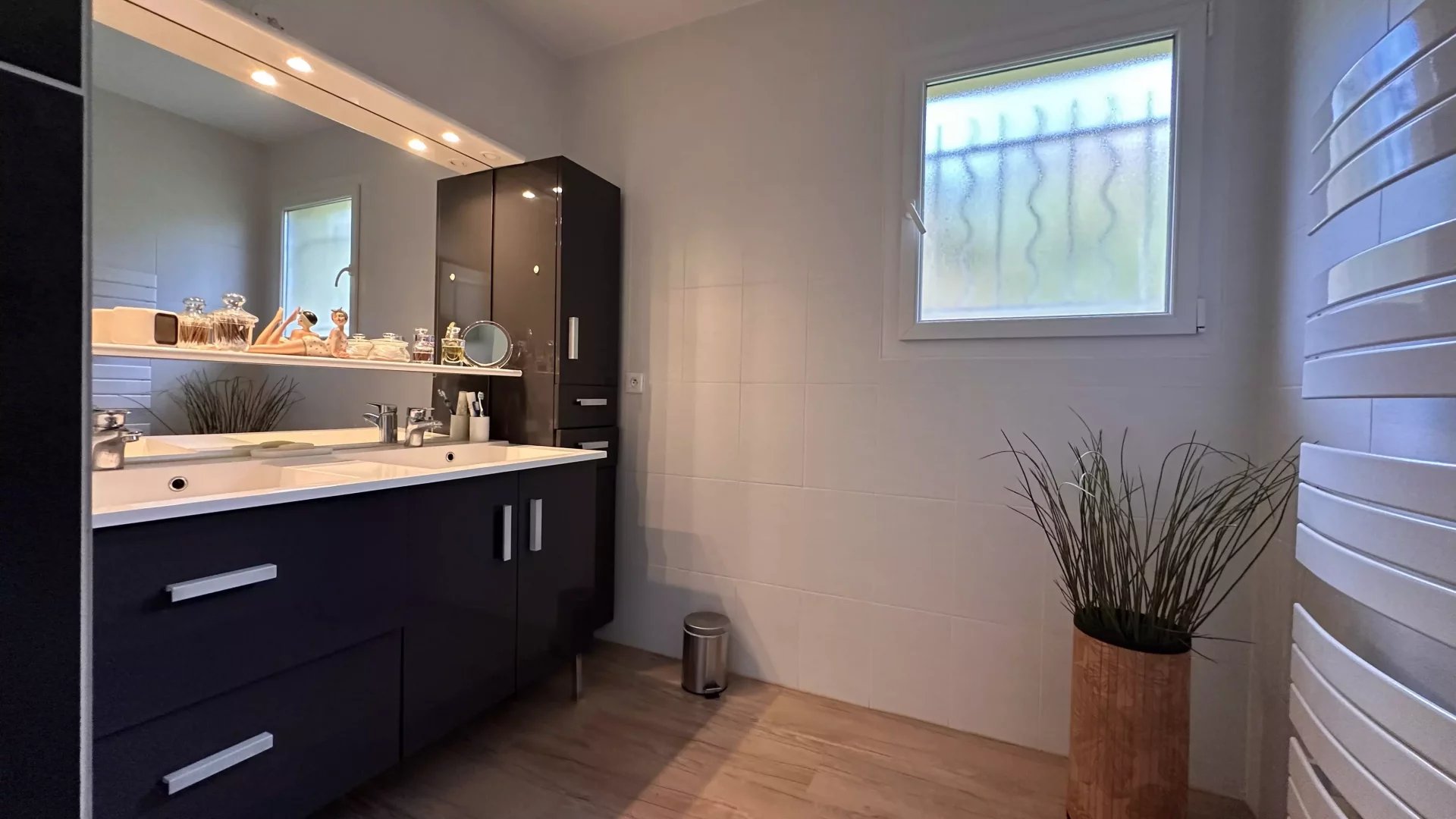 La première maison de 1993 d'environ 90m²(avec sous sol intégral) se compose d'une grande pièce de vie lumineuse avec grande cuisine ouverte donnant sur une terrasse couverte, de 3 chambres, d'une salle d'eau, d'un wc. Un sous sol aménagé avec espace buanderie, salle d'eau, wc, salle de jeux et salle de sport vous propose un grande espace de rangement. Le bien est parfaitement entretenu, lumineux et fonctionnel.