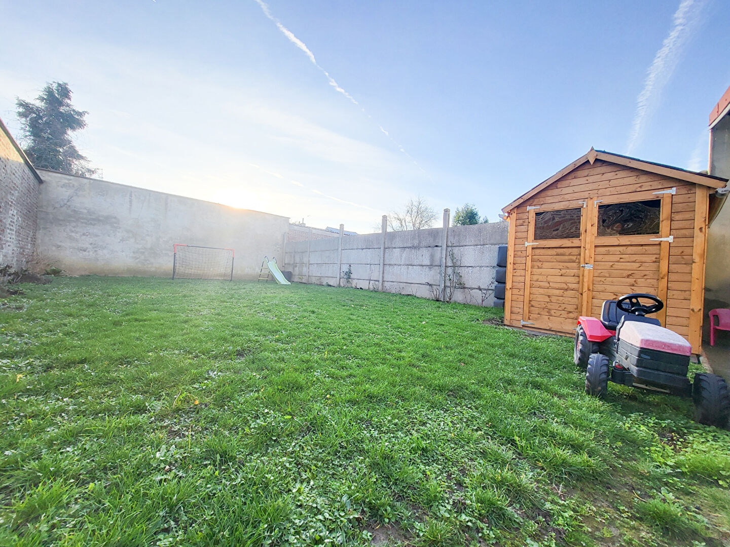 CAUDRY Maison de ville zéro travaux Exclusivité Agence Ent. sur couloir, un salon-sal. à m., une cuisine équipée, une sdb avec baignoire-douche, un w.c. 1er étage : Palier, 4 chs, une salle d'eau avec w.c. 2ème étage : Palier, très grande chambre divisible en 2, un dressing. C/C gaz, double vitrage pvc, toiture-isolation-électricité récentes, garage 3-4 V, terrain clos en pelouse, proche des écoles. Prix : 179 000 euros honoraires vendeur