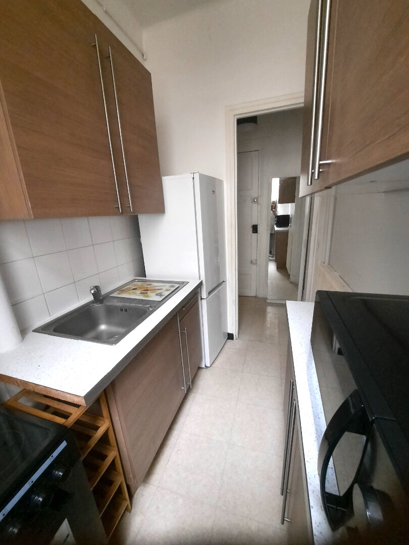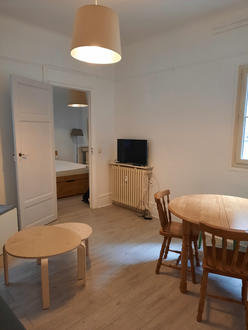 Rue Henri Duchène, à proximité de la rue du Commerce. Dans un bel immeuble en Pierre de taille, agréable 2 Pièces de 34,24m2 meublé, bénéficiant de la jouissance exclusive d'une petite cour entièrement protégée. Entrée, séjour, chambre, cuisine séparée équipée (grand réfrigérateur/congélateur, cuisinière avec four neuve, four micro-ondes neuf..), salle de bains avec WC et machine à laver le linge, nombreux rangements. Chauffage et eau chaude collectifs. Belle hauteur sous plafond. Libre de suite.