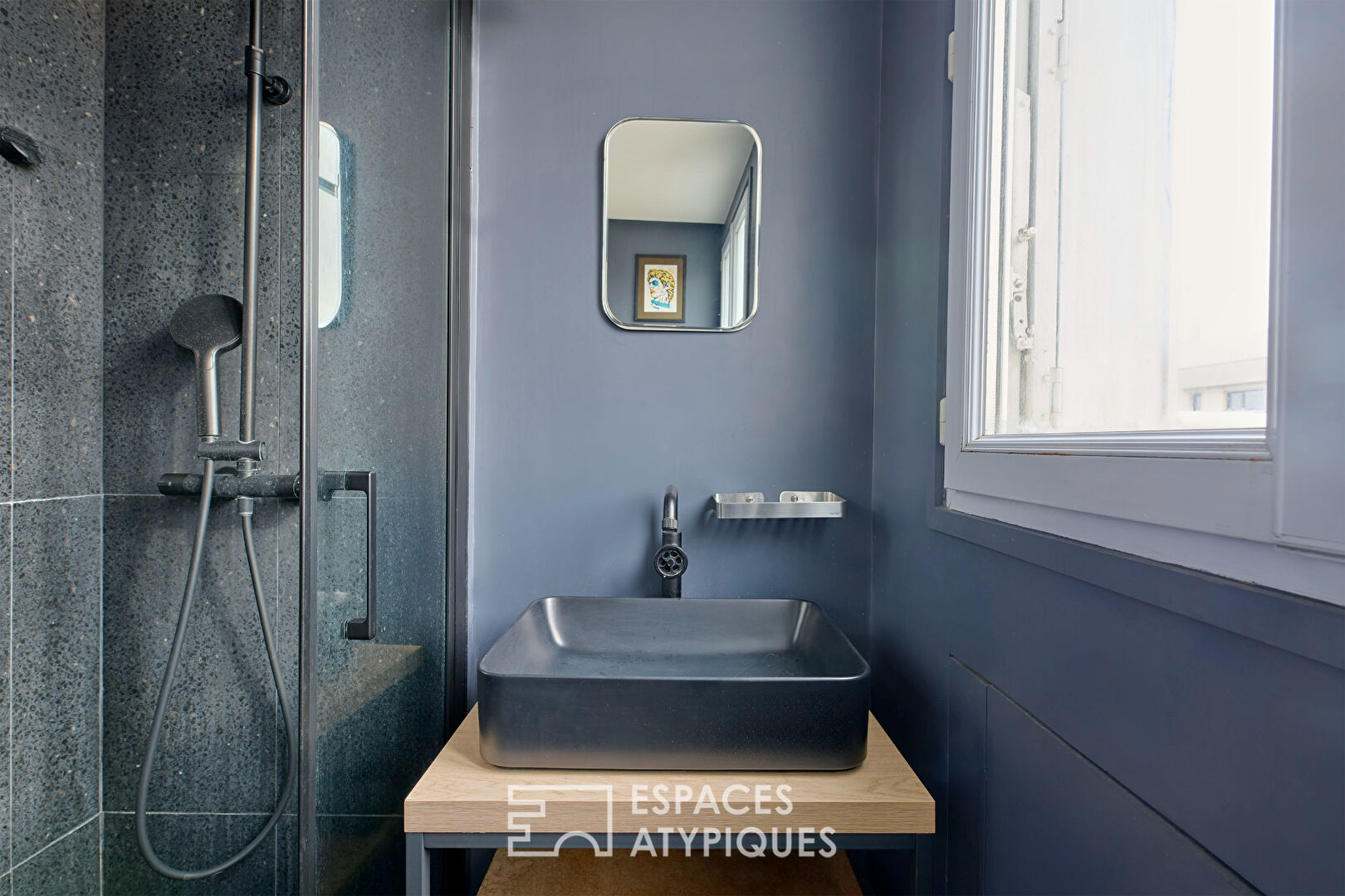 Véritable nid de 62,05 m² Carrez, situé au 7e étage étage (ascenseur jusqu'au 6e) cet appartement domine la ville depuis l'un des points les plus hauts de Paris - Télégraphe - à quelques pas du village Jourdain. Entièrement repensé par un architecte décorateur, le lieu associe élégance, matériaux haut de gamme et fonctionnalité sur-mesure. Rien n'a été laissé au hasard : chaque volume a été pensé pour optimiser la circulation, la lumière et l'intimité. Sa distribution a été conçue de façon à ce que chacun des volumes puisse exister de façon indépendante. L'espace de vie de 22m2 se déploie en trois séquences harmonieuses : séjour avec banquette sur mesure, cuisine moderne avec îlot central et espace extérieur de près de 4m2 pour prolonger les repas aux beaux jours ou savourer le coucher du soleil. Un dégagement sobre et graphique mène à une première salle d'eau avec douche, puis à une pièce bureau/couChage d'appoint de 7m2 environ. Enfin, la chambre principale conçue autour d'une estrade bénéficie d'un balcon permettant de mettre une table et d'une salle de bain attenante. Un appartement unique, pensé comme une expérience vécue tout en hauteur et où chaque détail raconte une intention. Métro : Télégraphe Ce bien est soumis au statut de la copropriété. CLASSE ÉNERGIE : G / CLASSE CLIMAT : G Montant moyen estimé des dépenses annuelles d'énergie pour un usage standard, établi à partir des prix de l'énergie des années 2021, 2022 et 2023 : entre 2750 euros et 3770 euros. Les informations sur les risques auxquels ce bien est exposé sont disponibles sur le site Géorisques : www.georisques.gouv.fr Contact : Véronique FAURE 06 10 70 68 89 RSAC : 793 153 248 Paris Copropriété de 11 lots (Pas de procédure en cours). Charges annuelles : 6091 euros. Véronique Faure (EI) Agent Commercial - Numéro RSAC : 793 153 248 - Paris.