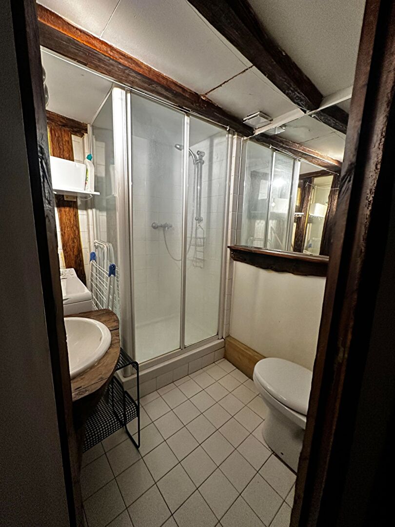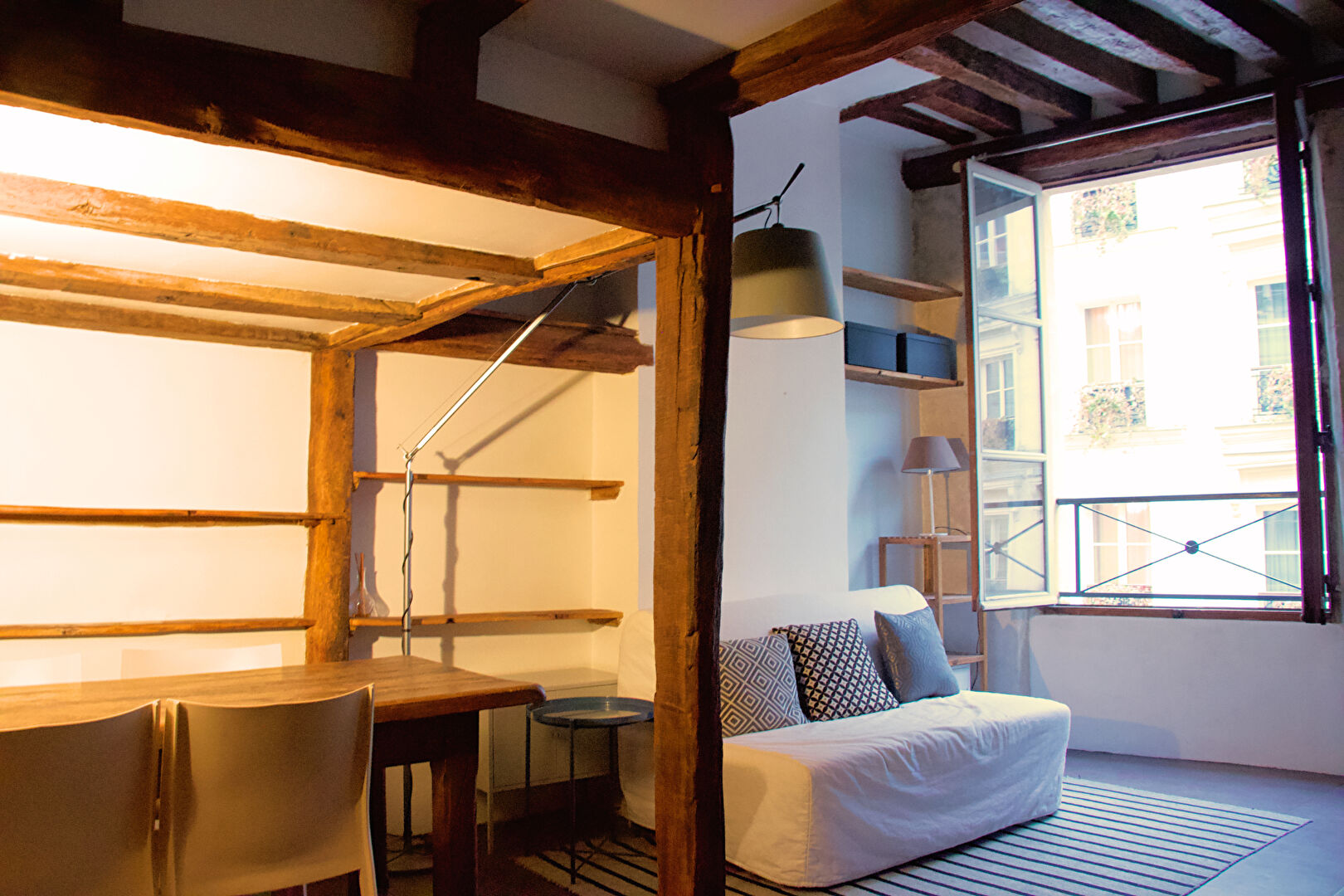 Paris 4 - Dans bel immeuble ancien - Rue de la Verrerie - Studio au 2ème étage, composé d'une entrée avec placard, d'une pièce de vie éclairée par 2 grandes fenêtres avec cuisine ouverte aménagée et bar central , salle d'eau avec WC. Et en mezzanine un espace couchage et des rangements. Lumineux et plein de charme. Poutres. DPE en E (301 au 01/01/2026 ) Belle hauteur sous plafond. (3.20m) Lumineux. Double vitrage bois Ideal Pied à terre ou 1er achat A deux pas du BHV et de tous commerces. Métro Hôtel de Ville. Tous commerces à proximité. (4.11 % honoraires TTC à la charge de l'acquéreur.) Copropriété de 24 lots - dont 22 lots habitation. (Pas de procédure en cours). Charges annuelles : 1184 euros.
