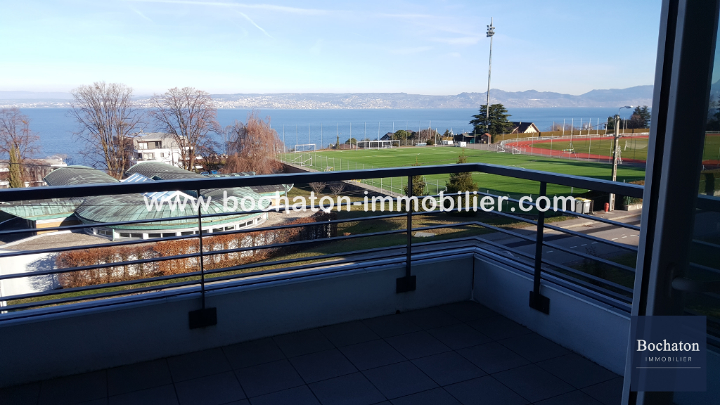 Dans résidence récente de standing, 2 pièces de 41.47 m², cuisine équipée ouverte sur séjour avec grande terrasse face au lac, 1 chambre, 1 salle de bain, 1 parking privatif, chauffage individuel électrique. LIBRE LE 17 janvier 2026. Agence BOCHATON IMMOBILIER 6 bis, avenue Jean Léger à EVIAN LES BAINS Tél: 04 50 75 64 80 - candidature@bochaton-immobilier.com