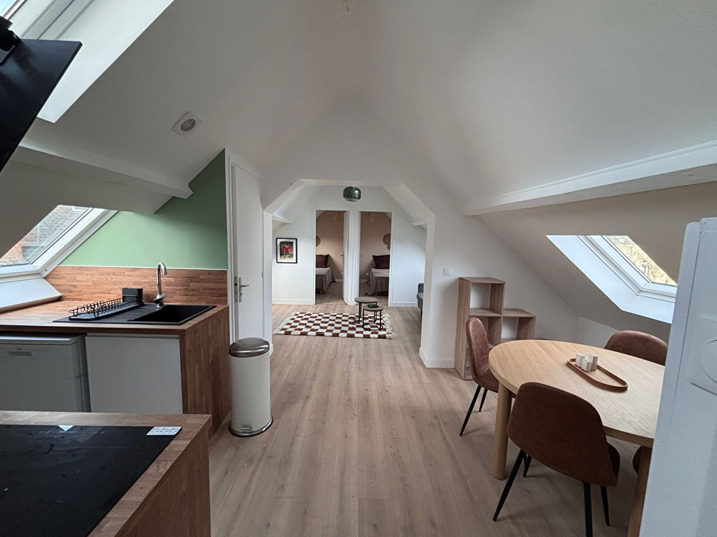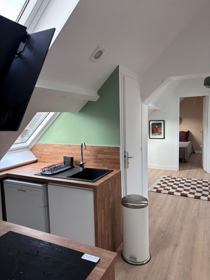 Appartement T3 meublé d'un peu plus de 50 m² surface au sol (25,35 m² loi Carrez), entièrement refait à neuf. Il se situe RUE JEANNE D'ARC à LILLE, au 3ème et dernier étage d'une petite copropriété. Il se compose d'un séjour lumineux avec cuisine ouverte équipée (four, réfrigérateur, plaque de cuisson, hotte), de 2 chambres avec lits doubles et dressings, d'une salle de bains avec douche et machine à laver/séchante, et des toilettes séparées. Chauffage individuel électrique. Eau chaude individuelle électrique. Colocation possible. DISPONIBLE IMMEDIATEMENT. Loyer HC : 1 240 euros/mois Provision charges : 40 euros/mois (eau froide, entretien et électricité des parties communes, taxe d'ordures ménagères) Soit un loyer charges comprises de 1 280 euros/mois Contact : 03 74 09 46 00 - contact@vereecke-immobilier.com Copropriété de 8 lots - dont 6 lots habitation.().