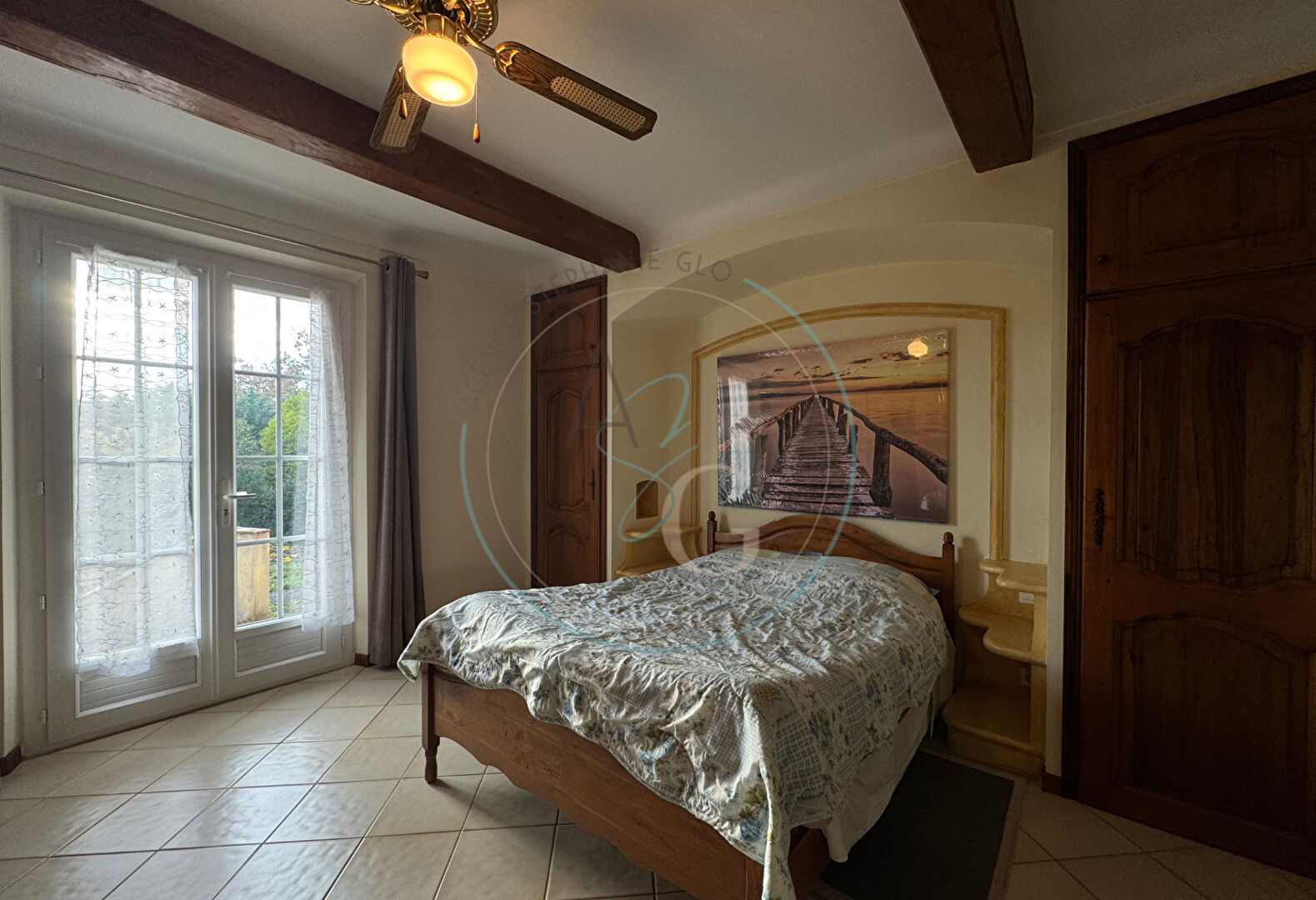 EXCLUSIVITE - L'agence Stéphanie Glo vous propose à la vente cette maison d'environ 135 m² habitables, édifiée sur un rez-de-chaussée sur garage et cave, bénéficiant d'un environnement résidentiel calme et arboré. Elle s'ouvre sur un hall d'entrée menant à un séjour / salle à manger lumineux avec cheminée, prolongé par une terrasse couverte. La cuisine ouverte communique également avec une seconde terrasse couverte. La partie nuit comprend trois chambres avec placards, dont deux donnant sur terrasse, une salle de douche avec WC ainsi qu'un WC invité. En rez-de-jardin, la maison dispose d'environ 75 m² supplémentaires comprenant un grand garage, un atelier, une buanderie et une cave, offrant de nombreuses possibilités d'aménagement ou de stockage. La parcelle, propose un cadre de vie paisible. Il est également possible de détacher une parcelle constructible d'environ 1 000 m², sous réserve des règles d'urbanisme en vigueur. Contactez-nous pour davantage d'informations ou pour organiser une visite. Flora GUISIANO (EI) Agent Commercial - Numéro RSAC : - .