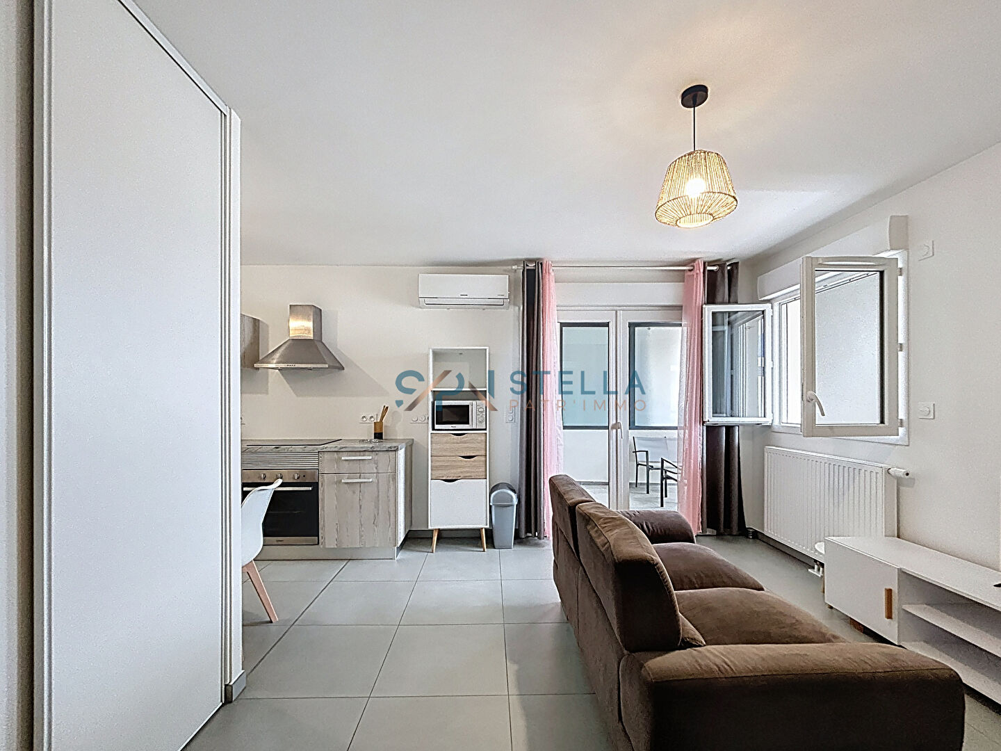 L'agence Stella Patr'Immo a le plaisir de vous proposer à la location meublée ce charmant studio entièrement équipé, situé dans la résidence Carré de Bodiccione à Ajaccio, sur la rocade, offrant un accès rapide à l'ensemble des axes principaux. Idéalement situé, le logement se trouve à proximité immédiate de toutes les commodités (commerces, transports, services), tout en bénéficiant d'un environnement pratique et recherché. Situé au 6ème et dernier étage, ce bien se compose d'une entrée avec cuisine équipée et table à manger, d'un espace salon et coin nuit comprenant un canapé et un lit, d'un grand placard de rangement intégré, ainsi que d'une belle salle d'eau avec WC. Le séjour s'ouvre sur une belle terrasse avec vue mer, idéale pour y installer une table et profiter de l'extérieur. Le logement est climatisé et dispose d'une place de parking privative au pied de l'immeuble. Le loyer est fixé à 670,00 euros charges de copropriété comprises, avec 50,00 euros supplémentaires pour l'eau chaude (commune). Le dépôt de garantie est de 720,00 euros et les frais d'agence s'élèvent à 364,00 euros.