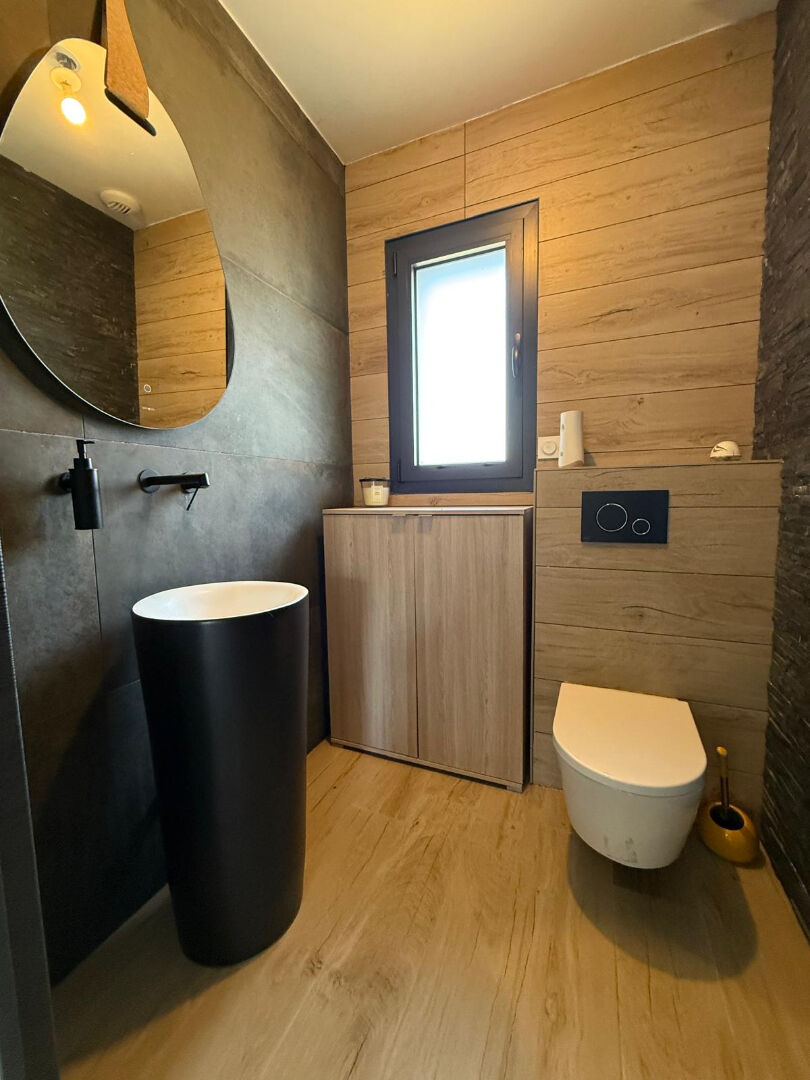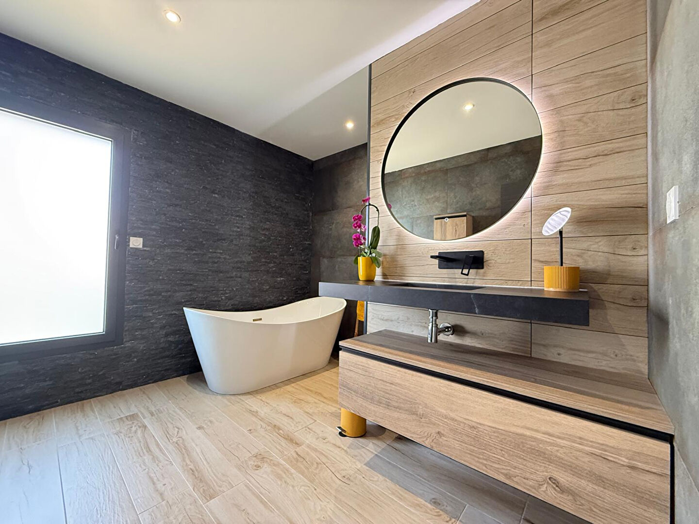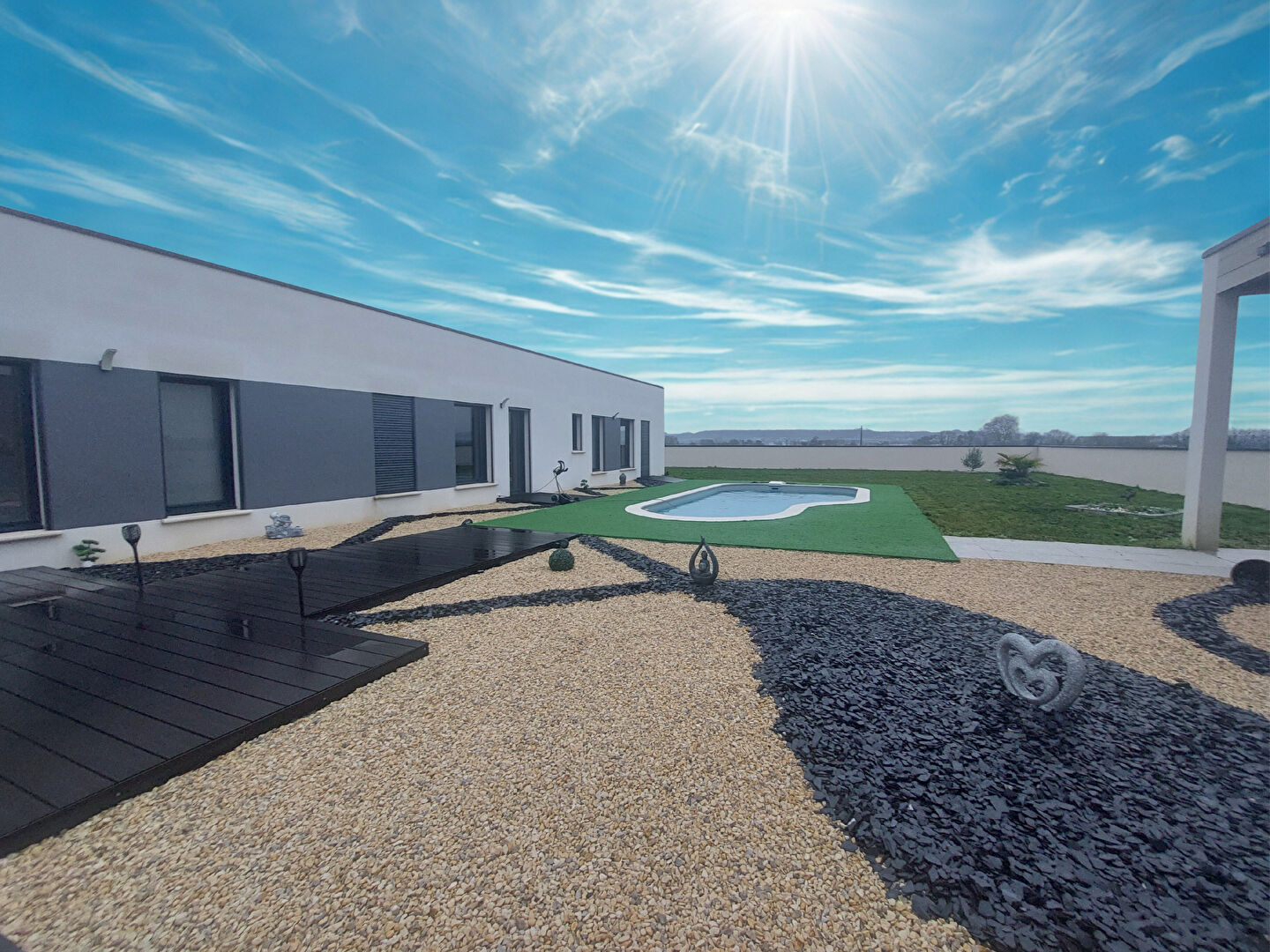 A Vaux-sur-Vienne, à seulement 15 minutes de Châtellerault et moins d'une heure de Tours, découvrez cette villa d'architecte contemporaine construite en 2021, située au calme, en bout d'impasse et à l'abri des regards. Développant environ 250 m² habitables, cette propriété séduit par ses volumes généreux, sa luminosité et la qualité de ses prestations. La pièce de vie d'environ 90 m², baignée de lumière, s'ouvre sur une cuisine design entièrement équipée, idéale pour les moments de convivialité. La maison dispose de cinq chambres, dont deux suites avec salle d'eau et toilettes, ainsi qu'une suite parentale de plus de 40 m² comprenant chambre, dressing, salle d'eau, toilettes et terrasse privative. Deux chambres supplémentaires se partagent une salle de bains contemporaine. Cellier et buanderie complètent l'agencement. Les prestations incluent une piscine de 8 x 4 m, un double garage isolé de 126 m² entièrement aménagé (cuisine, salle d'eau, WC, buanderie), un appentis de plus de 46 m² idéal pour une cuisine d'été, un jardin paysager, une terrasse en composite, des menuiseries aluminium, un toit plat, une climatisation réversible, un ballon thermodynamique, un adoucisseur d'eau, ainsi qu'un portail et des portes de garage motorisés. Maison conforme aux normes PMR. Un bien rare par son architecture contemporaine, ses volumes et son niveau de prestations, destiné à une clientèle en quête de confort et de modernité. (3.77 % honoraires TTC à la charge de l'acquéreur.)