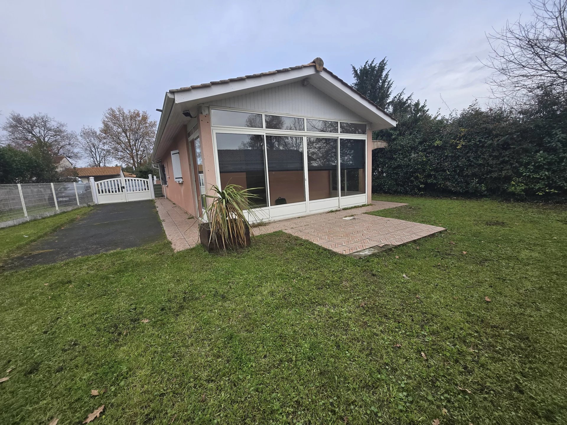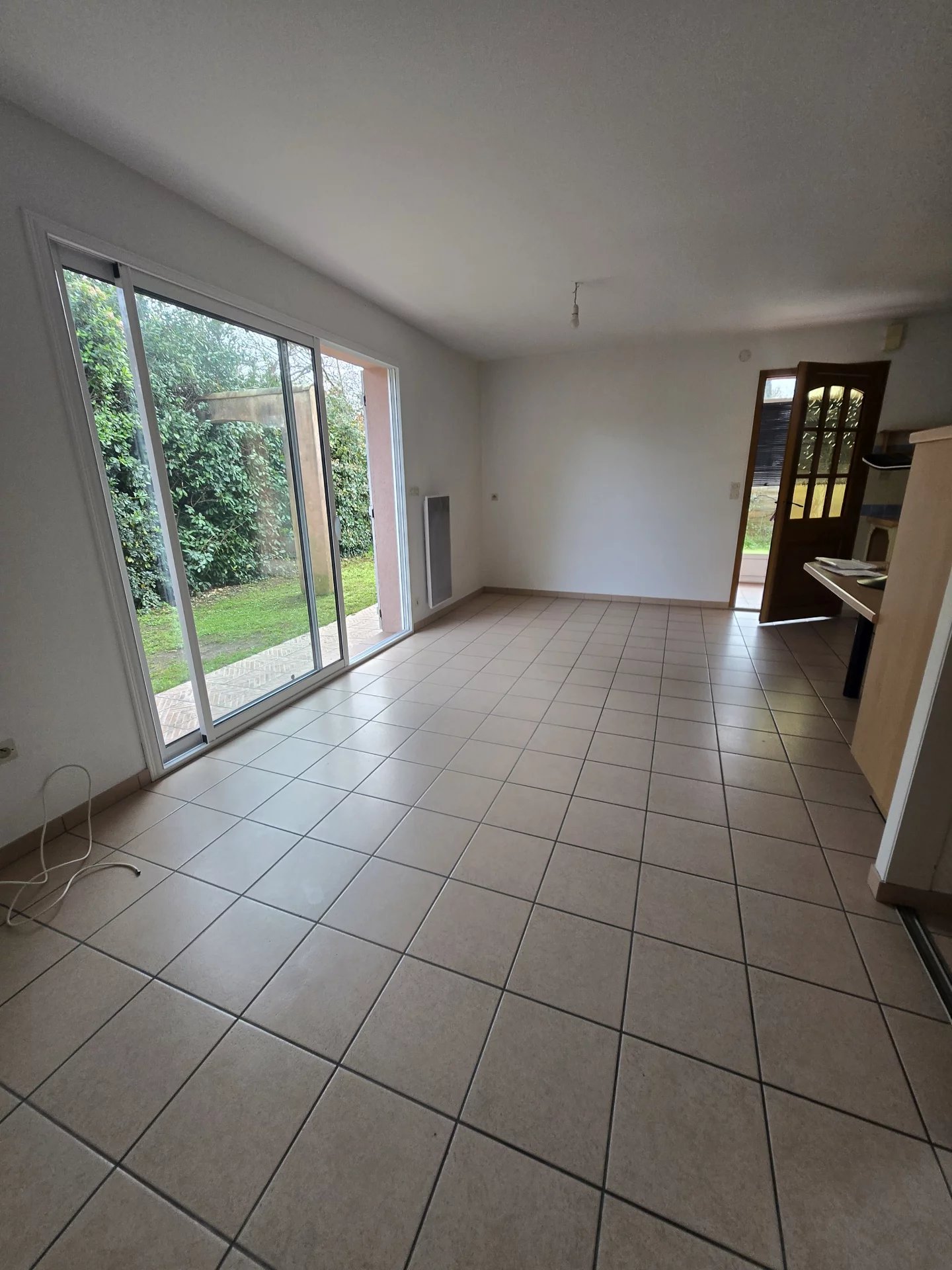 Dans une impasse au calme, à deux pas du collège et de la piscine, maison de plain-pied comprenant une véranda, un salon séjour/séjour avec cuisine aménagée et équipée, un cellier, une grande chambre de 18m² un w-c et une salle d'eau. Garage attenant à la maison. Jardin clôturé. La maison comporte des meubles.
