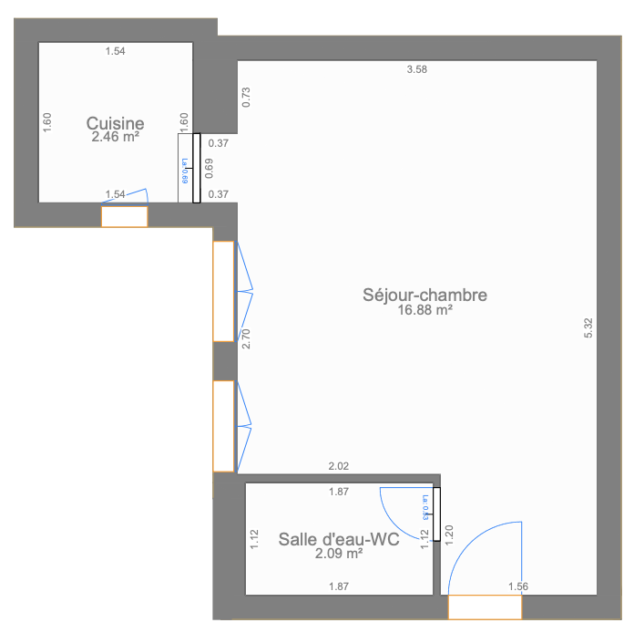 Il se compose d'un séjour agréable de 17m2 avec deux fenêtres apportant de la clarté et de nombreux rangements, une cuisine séparée aménagée et équipée (lave-vaisselle, lave-linge), une salle d'eau avec douche et toilettes. Une cave complète ce bien.