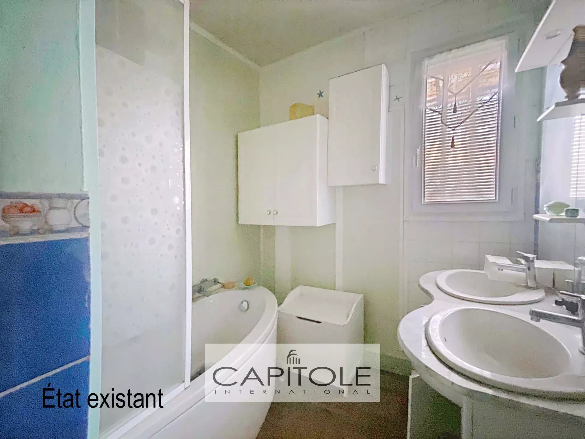 La première villa, actuellement divisée en deux appartements, offre de beaux volumes, une mezzanine, une cheminée et des espaces extérieurs ensoleillés. Elle peut être facilement réunifiée pour redevenir une agréable maison familiale.