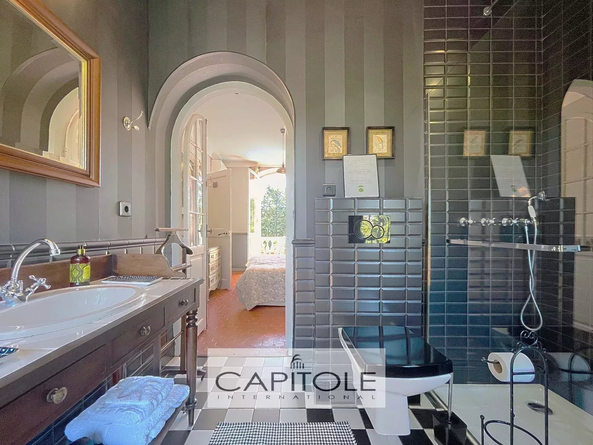 Au cœur d’un superbe parc paysager de 5 571 m², cette bastide de 267 m² conjugue charme provençal et prestations contemporaines.