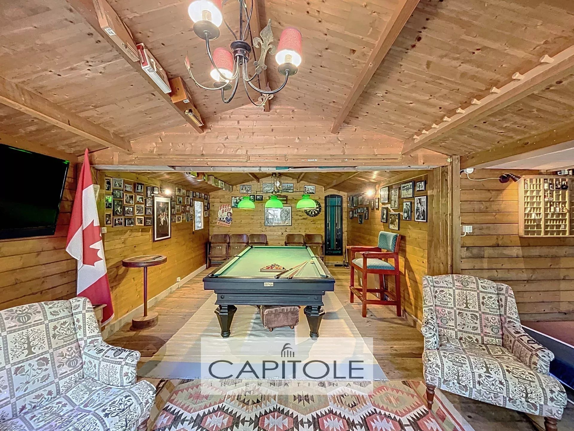 Piscine sécurisée plein sud, espace détente avec bar et billard, potager, double garage et vaste stationnement.