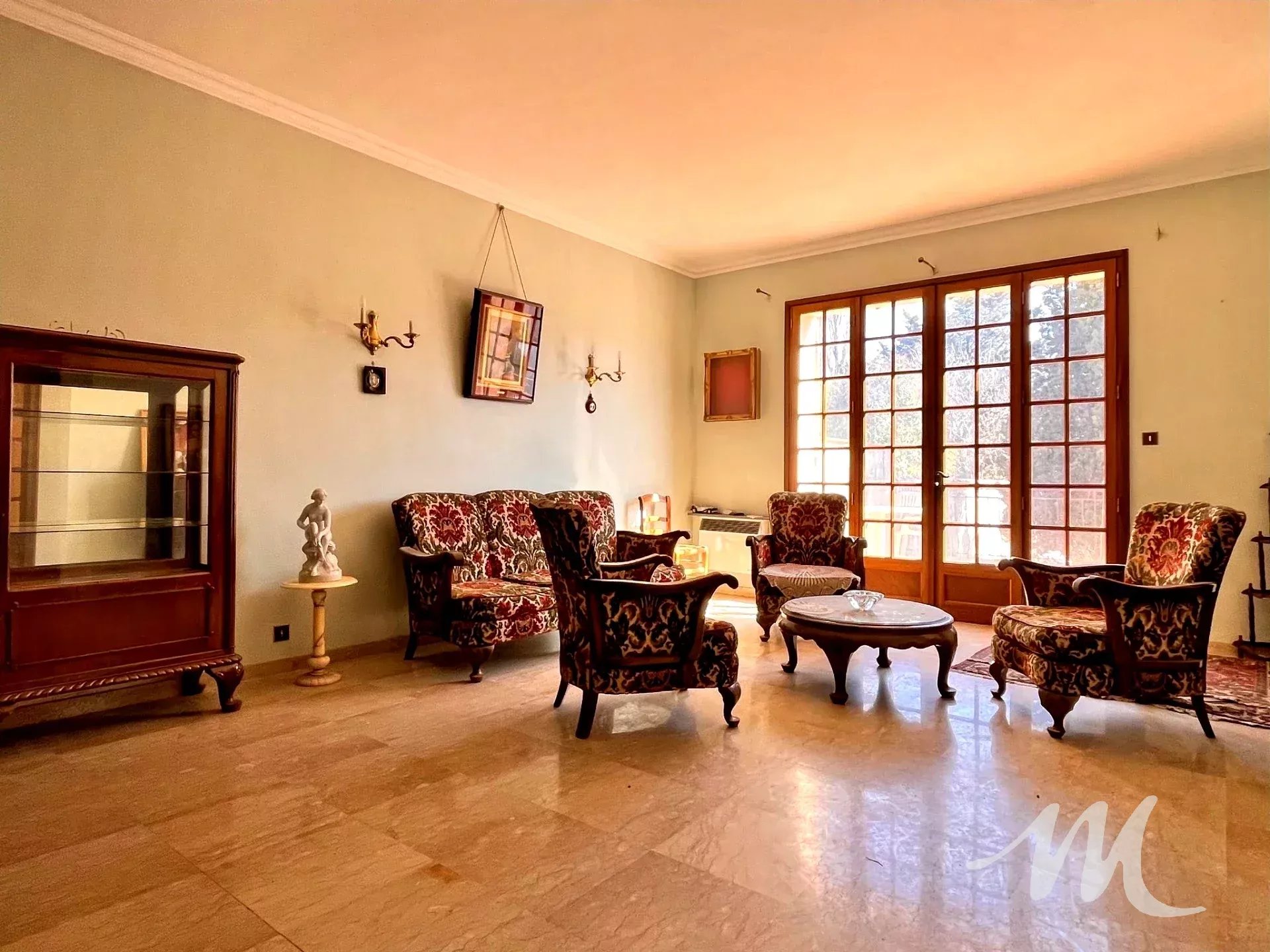 En entrant, vous serez accueilli par un vaste salon lumineux, parfait pour recevoir vos proches. La cuisine, avec son style traditionnel, vous invite à préparer de délicieux repas. Les grandes fenêtres laissent entrer la lumière naturelle, créant une atmosphère agréable tout au long de la journée.