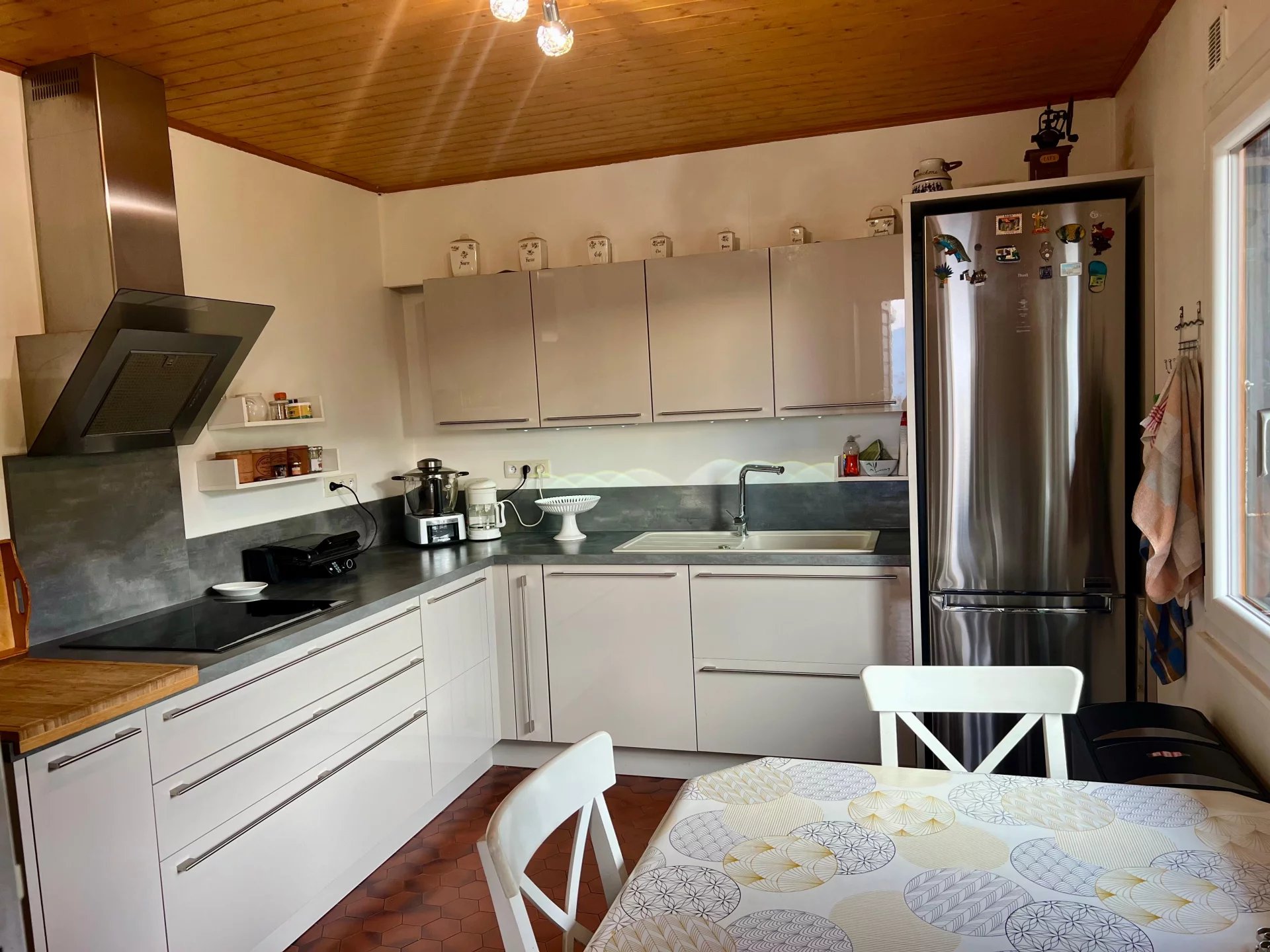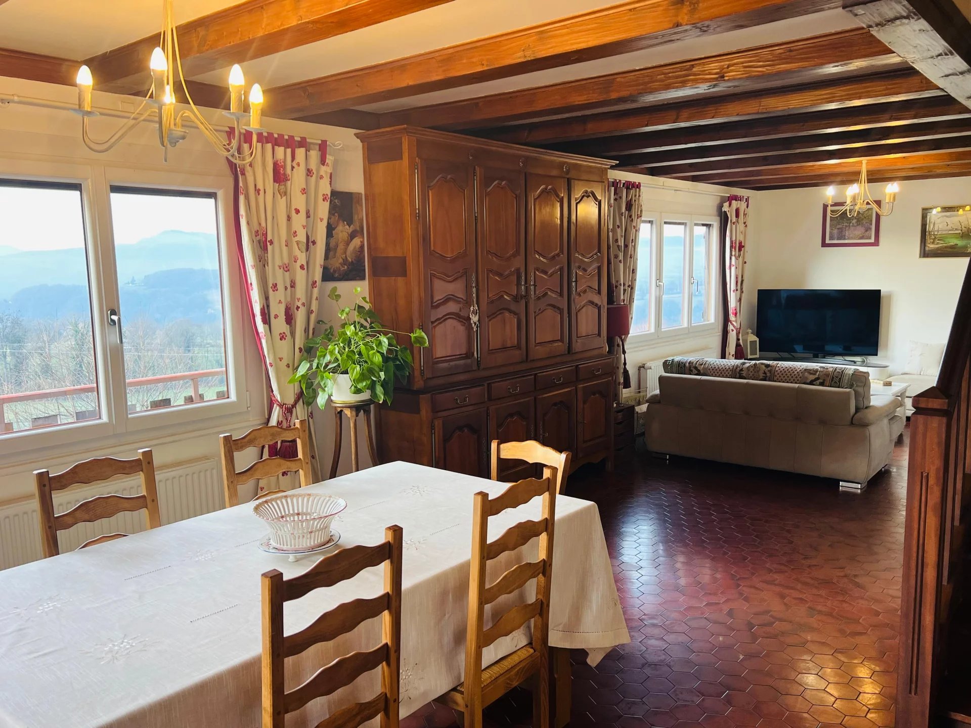 Au Montcel (73100) à la « porte des Bauges », dans cette maison des années 70, la lumière rentre comme une évidence, et offre un panorama ou la vue devient un luxe quotidien. Cette maison de caractère d’environ 200 m² (7 pièces) rénovée en 2018, offre un art de vivre rare, dans une harmonie vintage et contemporaine. Une maison élégante où l’on respire, où l’on ralentit, idéale pour une vie de famille, ou une résidence secondaire de charme. A l’extérieur le terrain de 2000 m² prolonge cette sensation de liberté et de sérénité. Dès l’entrée les volumes s’ouvrent généreusement sur des espaces de vie chaleureux baignés de lumière qui s’organisent autour de l’authentique poêle alsacien dans une atmosphère douce. Sous-sol : salle de sport – buanderie - dressing - WC rez-de-jardin : (1er niveau) accessible par la terrasse ou le garage : Salle à manger – bureau – cuisine - 2 chambres spacieuses et lumineuses – parquet d’origine une salles de douche – toilette - Deuxième niveau : 2 chambres - Salle de douche avec toilette - Petite grenier et combles isolés à aménager - Un double garage/atelier - Une cave à vin - fenêtres PCV double vitrage – volets électriques – climatisation – fibre optique – système d’alarme – Un bien rare pour les amateurs de nature, d’espace proche de toutes les commodités. Combles isolés possibilité de créer une pièce supplémentaire – parcelle entièrement constructible – double garage/atelier – carport bois pour camping car Renseignements Gisèle 06 79 19 71 39 ou Killian 07 70 54 62 93