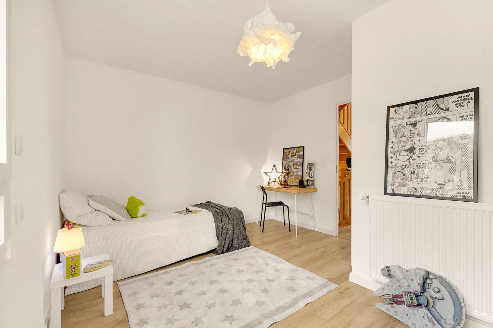 Le dernier niveau accueille une spacieuse chambre parentale nichée sous les combles, offrant charme, intimité et volumes généreux.
