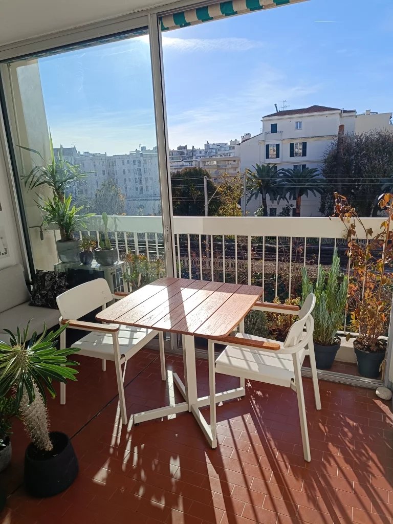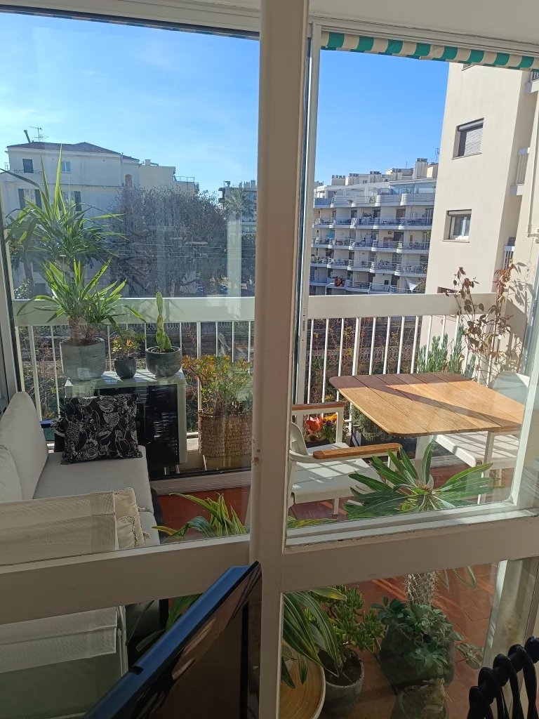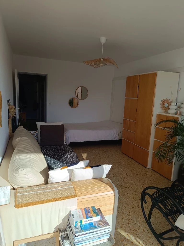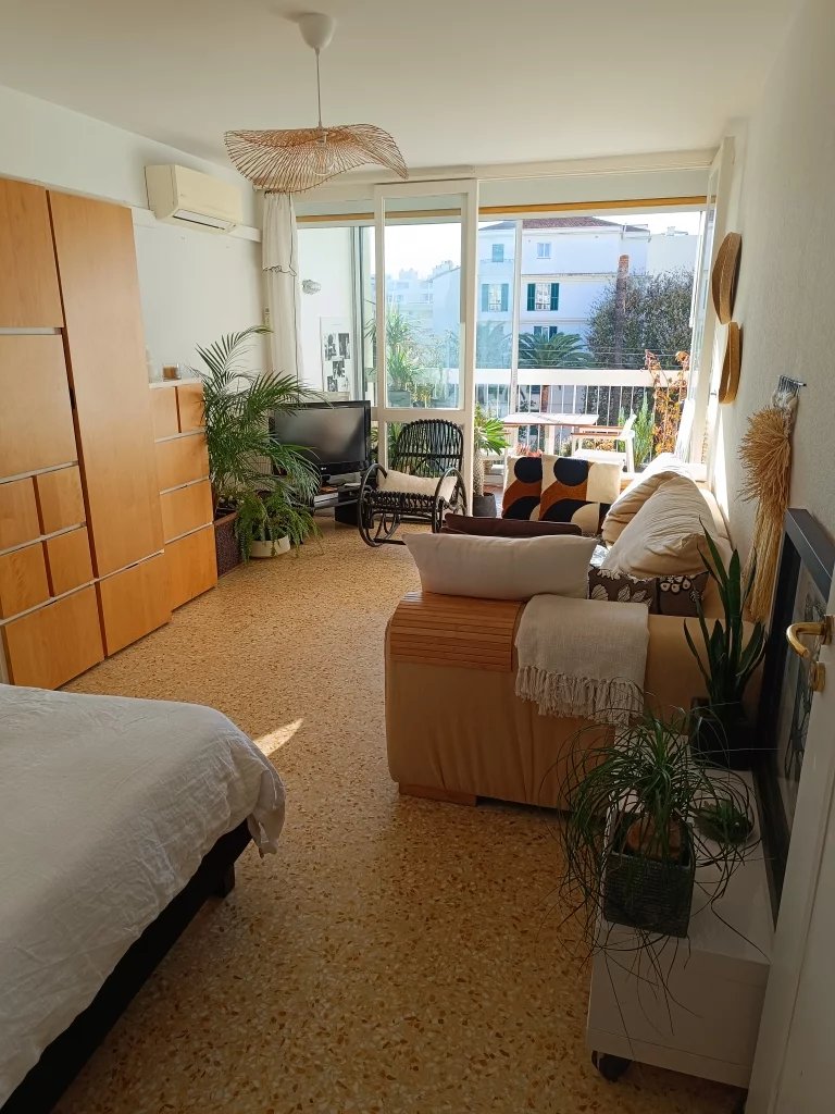 F1 CENTRE JUAN DE 30 m2 étage élevé vue dégagée sans vis-à-vis + véranda terrasse de 7 m2 au calme 300m des plages, bus et écoles climatisation