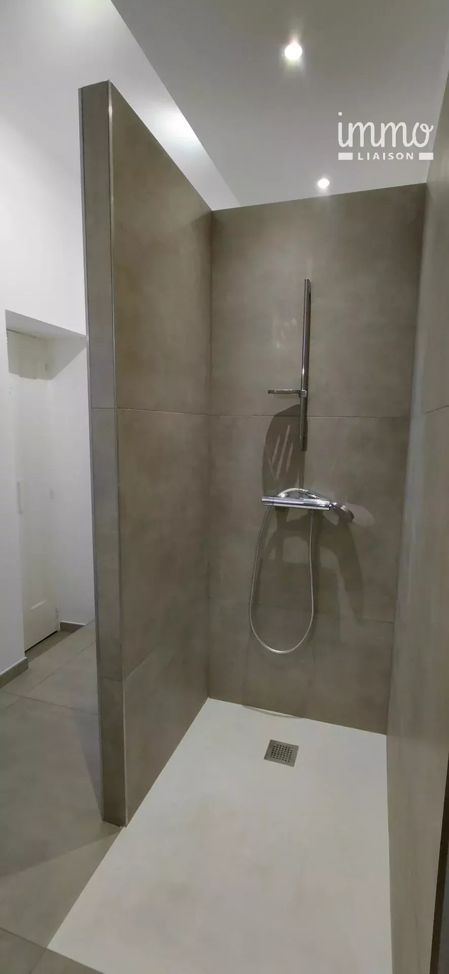 L'appartement est composé d'un hall d'entrée, un couloir, deux chambres dont une équipée d'un dressing aménagé et balcon, une salle d'eau spacieuse avec douche, lavabo et WC, machine à laver.