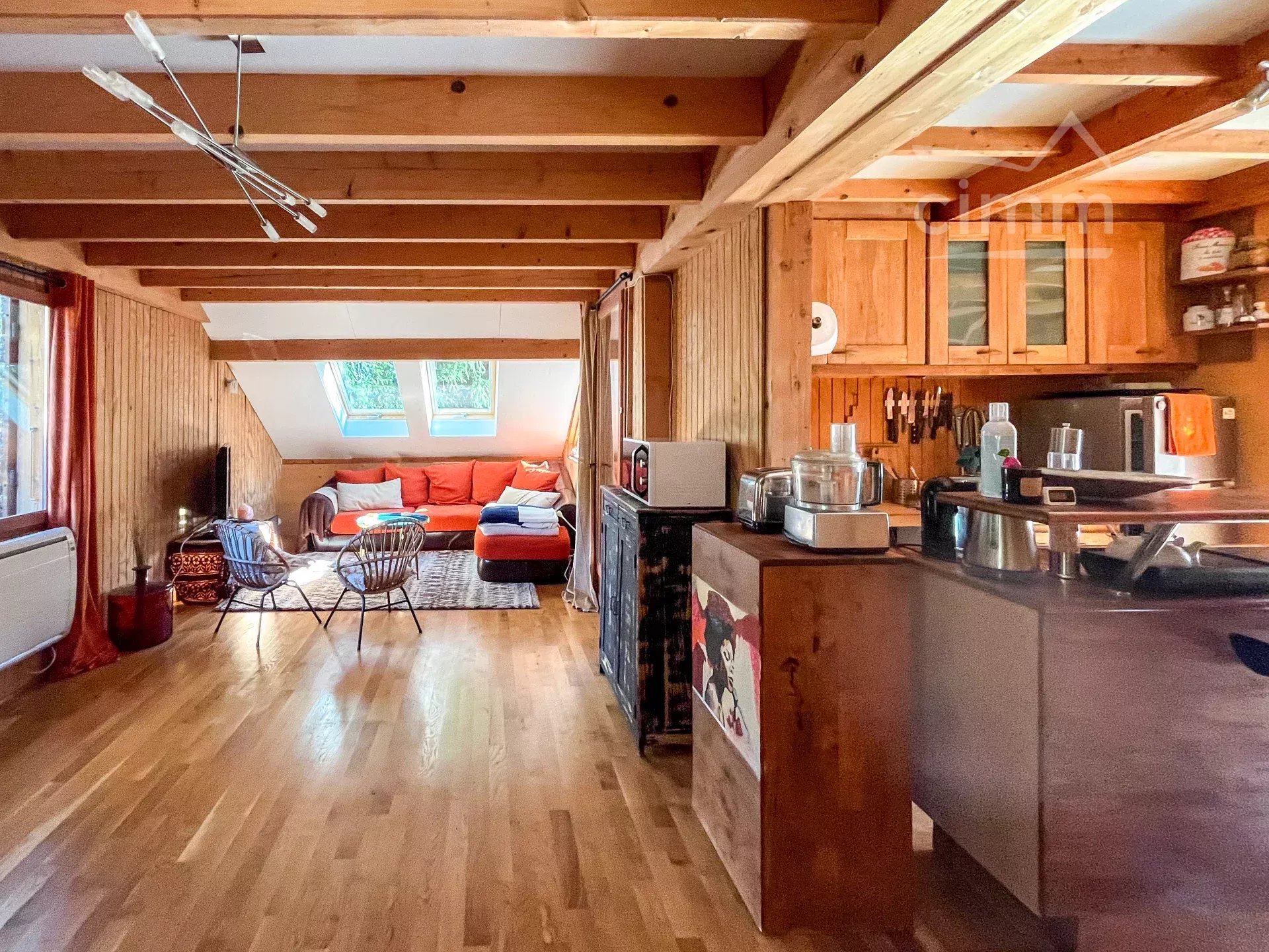 - Grande pièce de vie lumineuse d'environ 55 m2 avec belle terrasse exposée SUD et vue Chartreuse