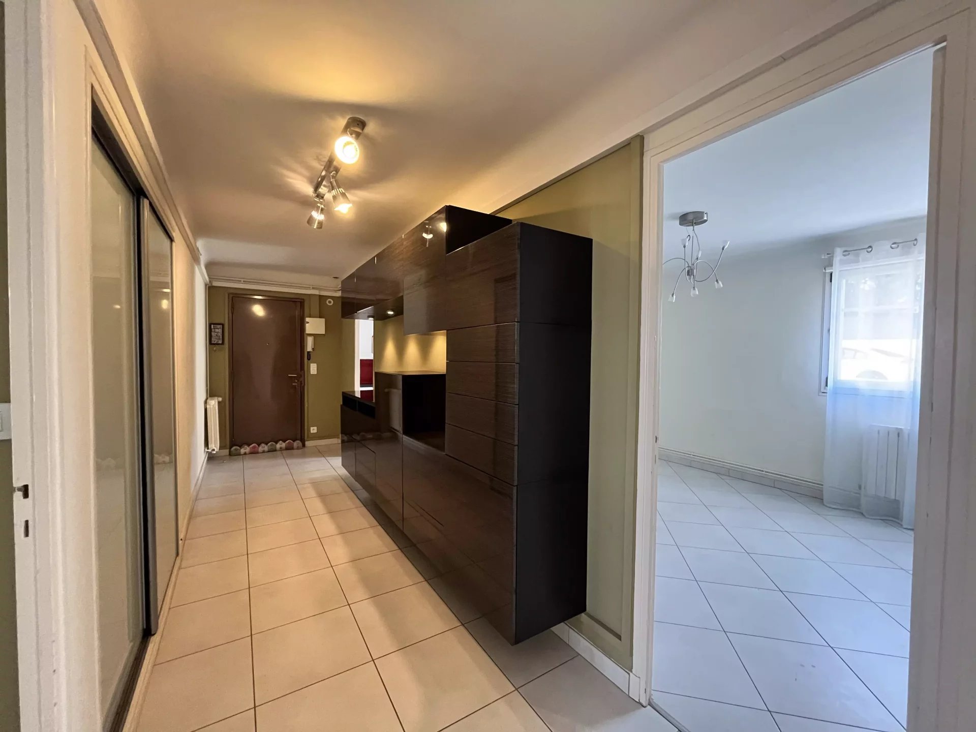 d'une entrée avec grand dégagement équipé de placards, d'une cuisine séparée avec possibilité d'y manger; d'un séjour, de 3 chambres dont une climatisée, d'une salle d'eau rénovée récemment et d'un WC séparé.