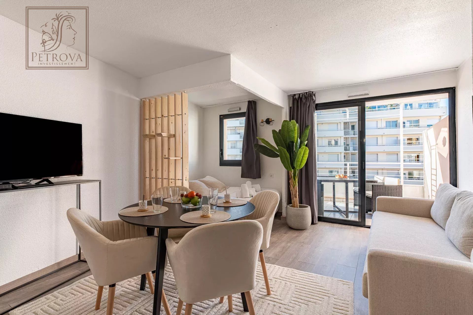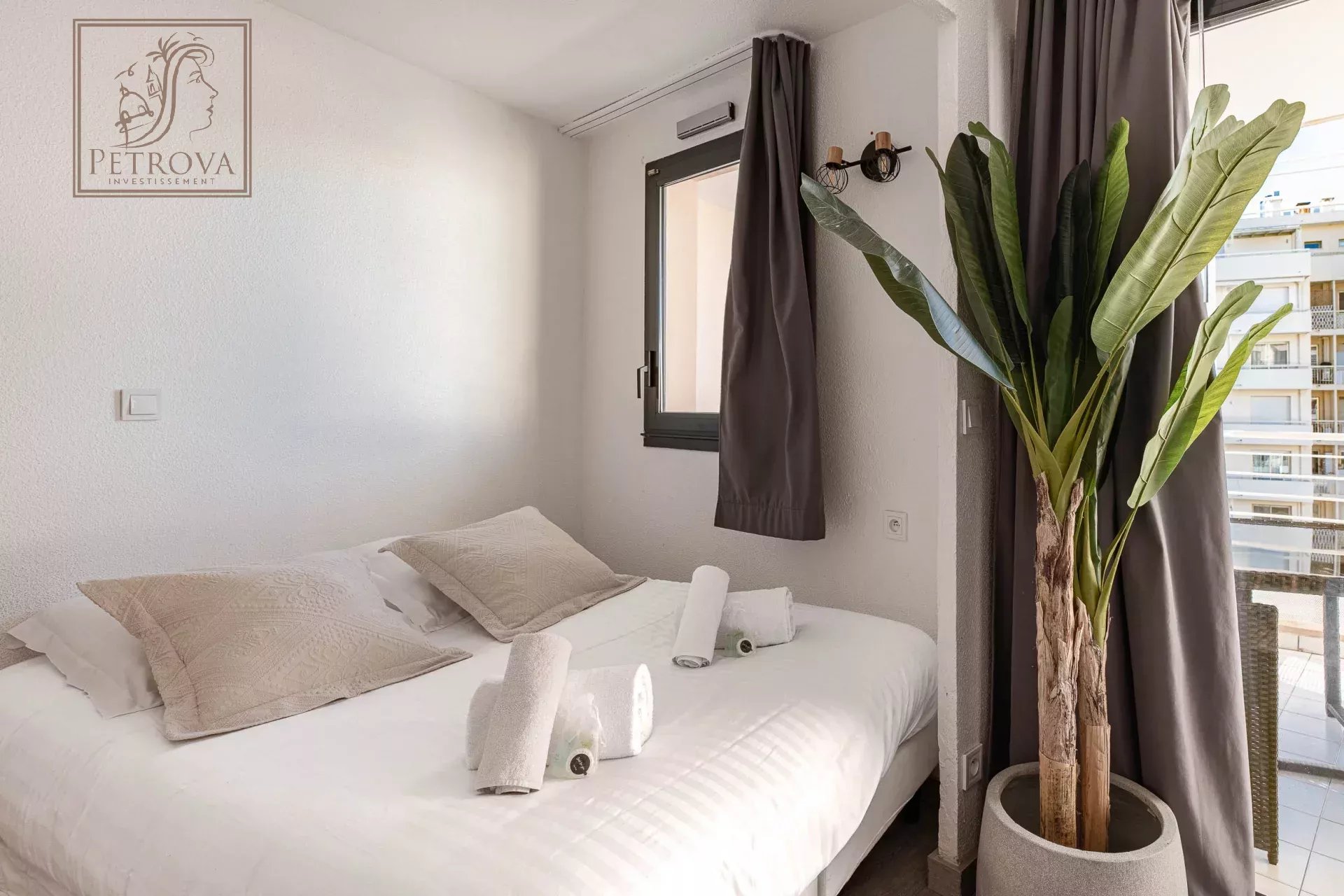 À vendre à Cannes, au sein d’une résidence avec piscine, très beau studio de 26 m² vendu meublé et bénéficiant d’un agréable aperçu mer.
