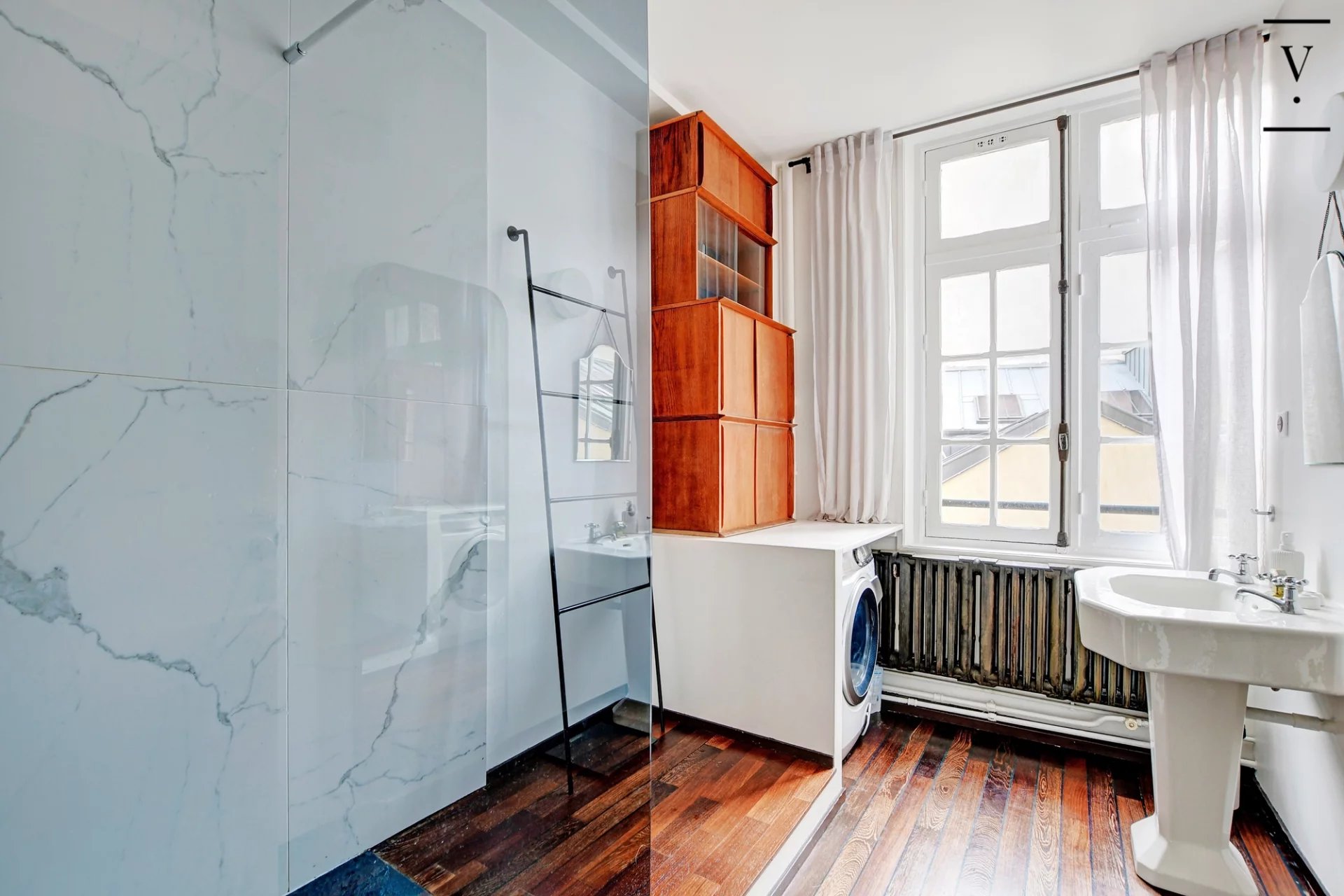 Entre la place des Vosges et la rue de Bretagne, l'agence Villaret Immobilier vous propose ce superbe appartement traversant et ensoleillé, avec ascenseur. Il fait partie d'un immeuble de caractère, construit en 1926 en briques et pierre de taille, à l'architecture singulière grâce à ses larges fenêtres qui offrent de belles vues sur les Archives Nationales et le Musée Picasso. Ce bien rare est actuellement configuré en appartement de deux chambres, et peut aussi être modifié à volonté grâce à ses nombreuses fenêtres et à l'absence de murs porteurs. Une cave - Un local à vélos au sous-sol.
