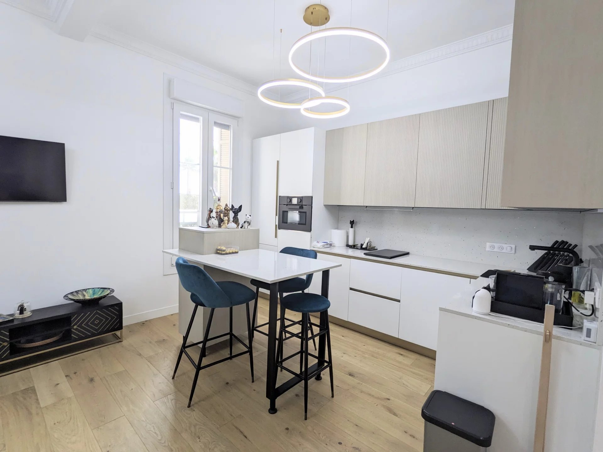 À Nice, sur la célèbre Promenade des Anglais, au sein d’une résidence sécurisée des années 1920 et en retrait de la rumeur de la circulation, se trouve cet appartement de 55 m² entièrement rénové, situé en rez-de-chaussée. L’entrée mène à un séjour lumineux exposé plein sud, offrant une atmosphère chaleureuse et agréable au quotidien. La cuisine, entièrement équipée, prolonge harmonieusement la pièce de vie et s’intègre avec fluidité à l’ensemble. L’appartement comprend deux chambres, dont une suite parentale avec sa propre salle de douche et toilettes, ainsi qu’une deuxième salle de douche avec toilettes, offrant un confort supplémentaire et une configuration très fonctionnelle. La hauteur sous plafond remarquable de 3,20 m, typique des immeubles des années 1920, accentue la sensation d’espace et apporte beaucoup de caractère. La rénovation intègre un triple vitrage garantissant un excellent confort acoustique, une climatisation réversible, des radiateurs haut de gamme, une porte blindée ainsi que de nombreux rangements intégrés. Une cave d’environ 5 m² accompagne le bien. Cet appartement élégant et confortable constitue une opportunité rare sur la Promenade des Anglais, idéal en résidence principale, en pied-à-terre ou en investissement locatif grâce à sa localisation privilégiée et à la qualité de sa rénovation. Les informations sur les risques auxquels ce bien est exposé sont disponibles sur le site Géorisques : georisques.gouv.fr.