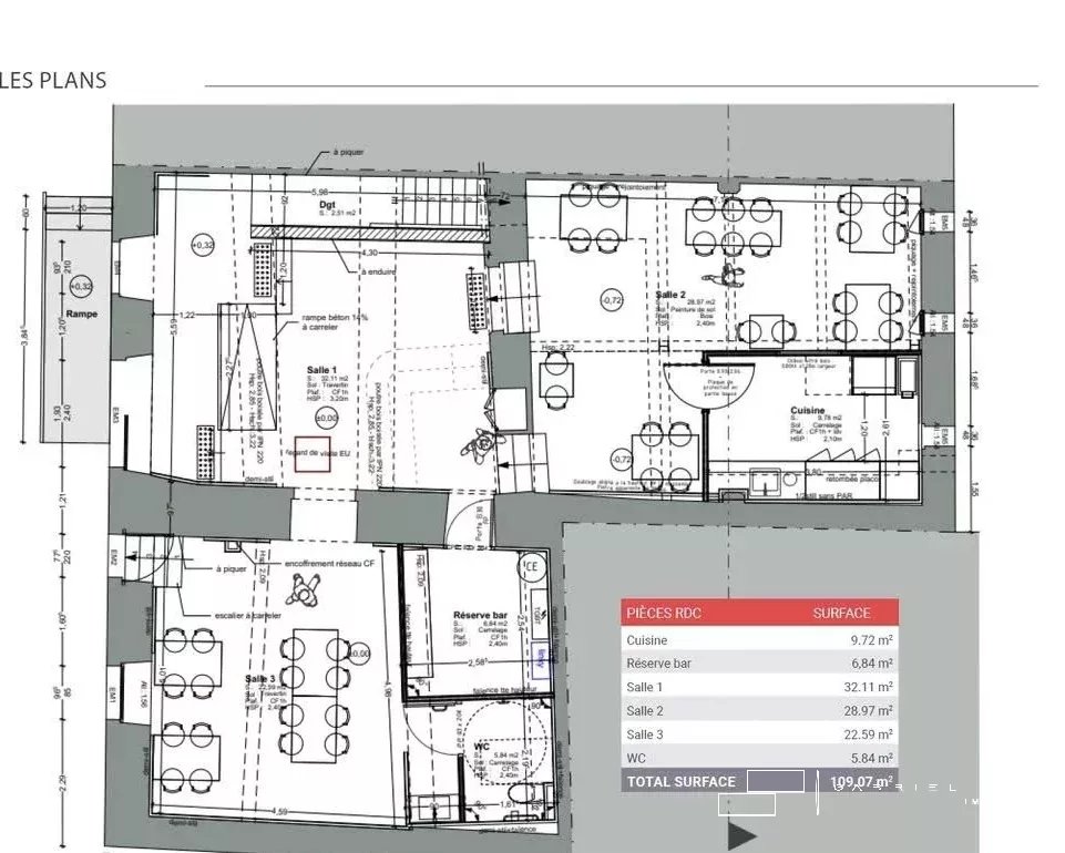 Il se compose de 3 salles spacieuses, d'un espace réserve bar ainsi qu'un coin cuisine.