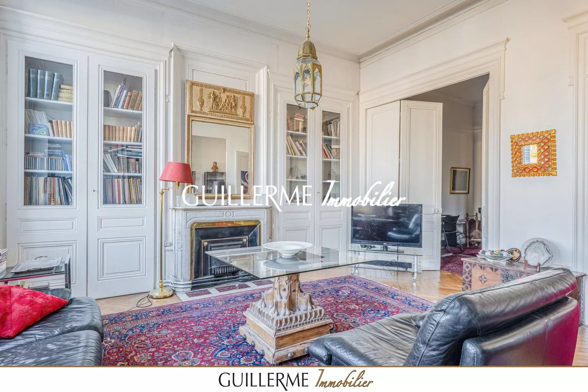 Au calme, dans bel immeuble Haussmannien à la façade rénovée, en RDC surélevé, vous découvrirez ce magnifique appartement de 97m² traversant et lumineux.