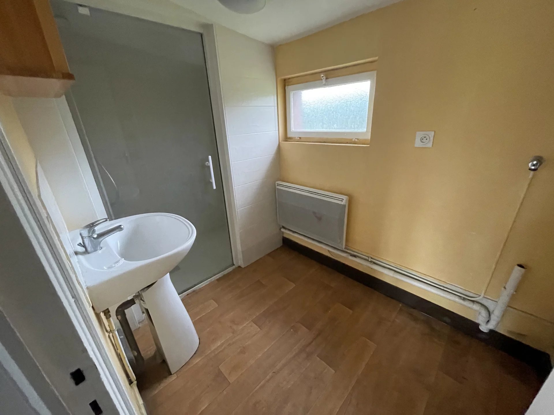 Cette maison comprend cuisine, séjour , salon, 1 chambre, salle d'eau et WC séparé. Terrain avec un bâtiment.
