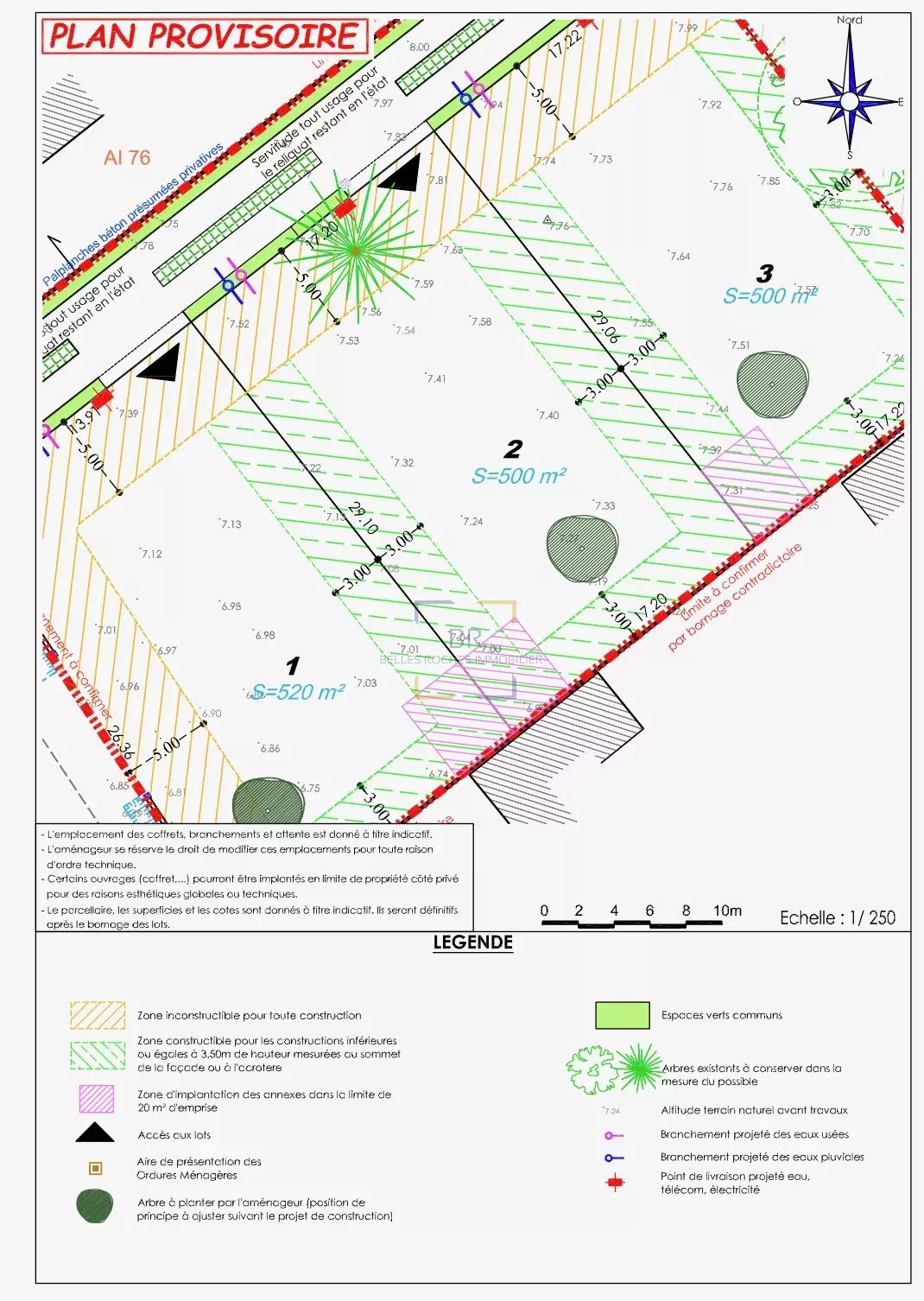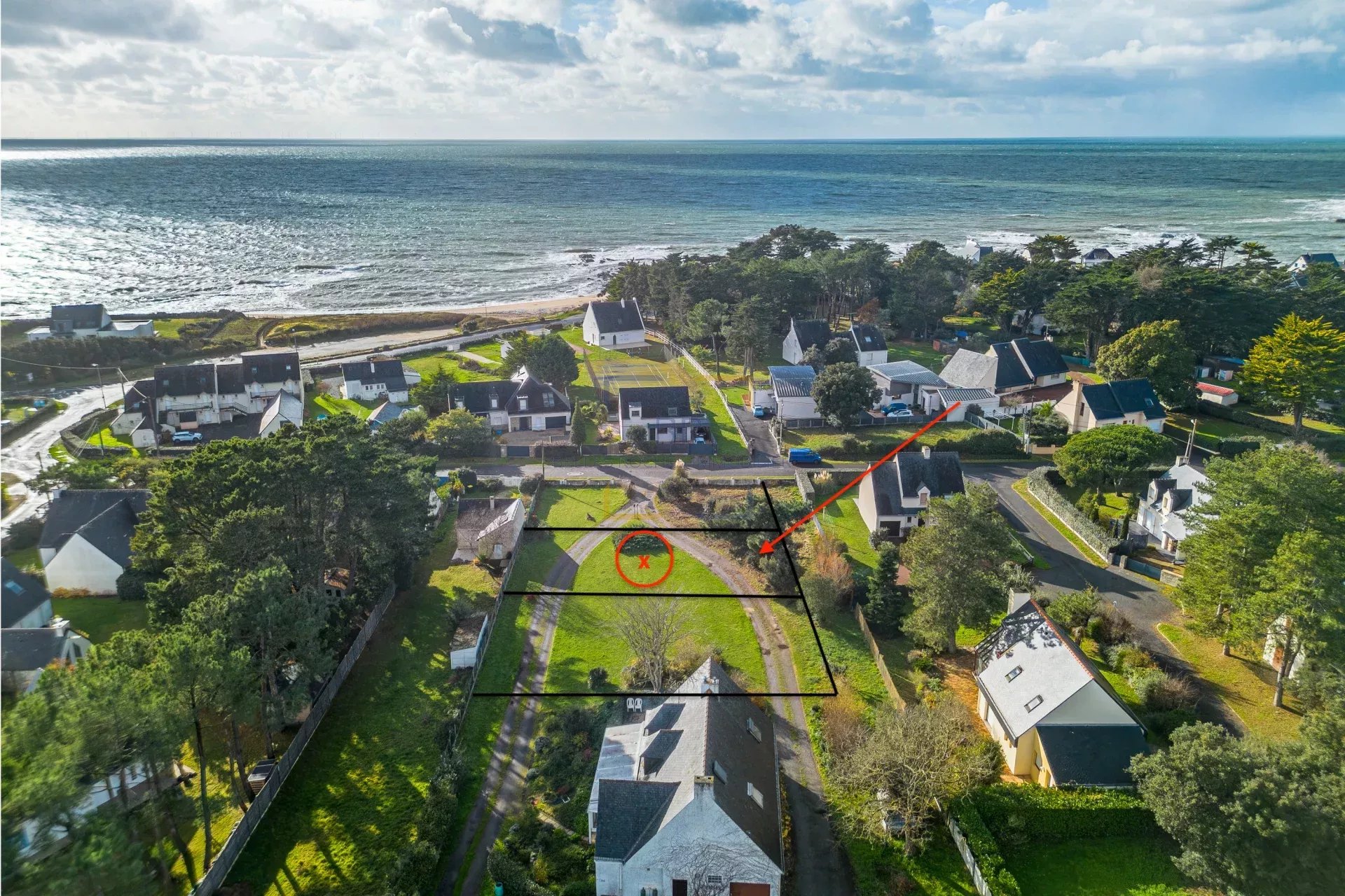 Piriac, à 200 m de la plage, dans un quartier calme et résidentiel, dans un petit lotissement de 3 lots, terrain à bâtir de 500 m2 exposé Sud-Est et Sud-Ouest, situé dans une zone de faible exposition au retrait-gonflement des argiles. Vendu borné, viabilisé et libre de constructeur. Lot N°2 : dimensions 17 m x 29 m. Surface plancher autorisée 250 m2. Prix de vente : 269 984 €. Honoraires à la charge de l’acquéreur : 3,84 % TTC (prix net vendeur : 260 000 €). Les informations sur les risques auxquels ce bien est exposé sont disponibles sur le site Géorisque : www.georisques.gouv.