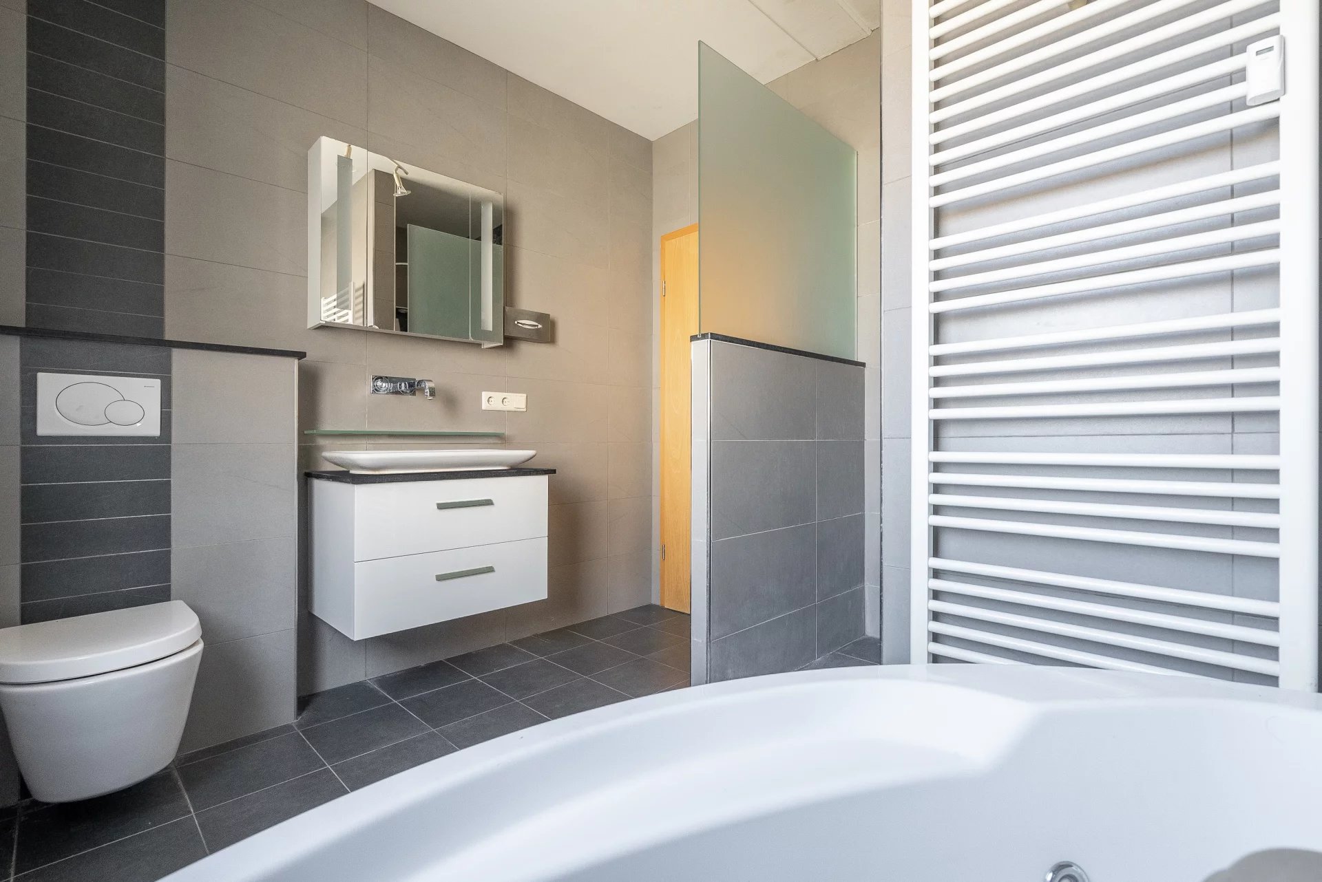 Situé au 2ème étage d’une résidence bien entretenue, cet appartement de 99 m² offre un cadre de vie confortable et fonctionnel, idéal pour un couple ou une famille à la recherche d’un logement spacieux à Schifflange. Construit en 1993, il est immédiatement disponible et bénéficie d’un excellent agencement. Dès l’entrée, vous serez séduit par un vaste séjour lumineux, parfait pour aménager un espace salon et salle à manger convivial. Le séjour s’ouvre sur un balcon, apportant une belle luminosité naturelle et un espace extérieur agréable. La cuisine séparée, entièrement équipée, garantit confort et praticité au quotidien. L’appartement dispose de deux chambres spacieuses, idéales pour une chambre parentale et une chambre d’enfant ou un bureau. La salle de bains est équipée d’une baignoire balnéo, offrant un espace détente après une longue journée. Côté prestations, le bien est doté de fenêtres en double vitrage PVC, d’un revêtement de sol combinant parquet et carrelage, et d’un système de chauffage par radiateurs. Une cave privative est également incluse, offrant un espace de rangement supplémentaire. Possibilité d’acquérir un emplacement de parking intérieur en supplément pour 30 000 €. Idéalement situé à Schifflange, cet appartement bénéficie d’un accès facile aux transports en commun, commerces et axes routiers, tout en offrant un cadre de vie agréable et calme. Si vous recherchez un appartement spacieux, lumineux et bien situé, n’attendez plus pour organiser une visite !Contactez-nous dès maintenant pour plus d’informations.