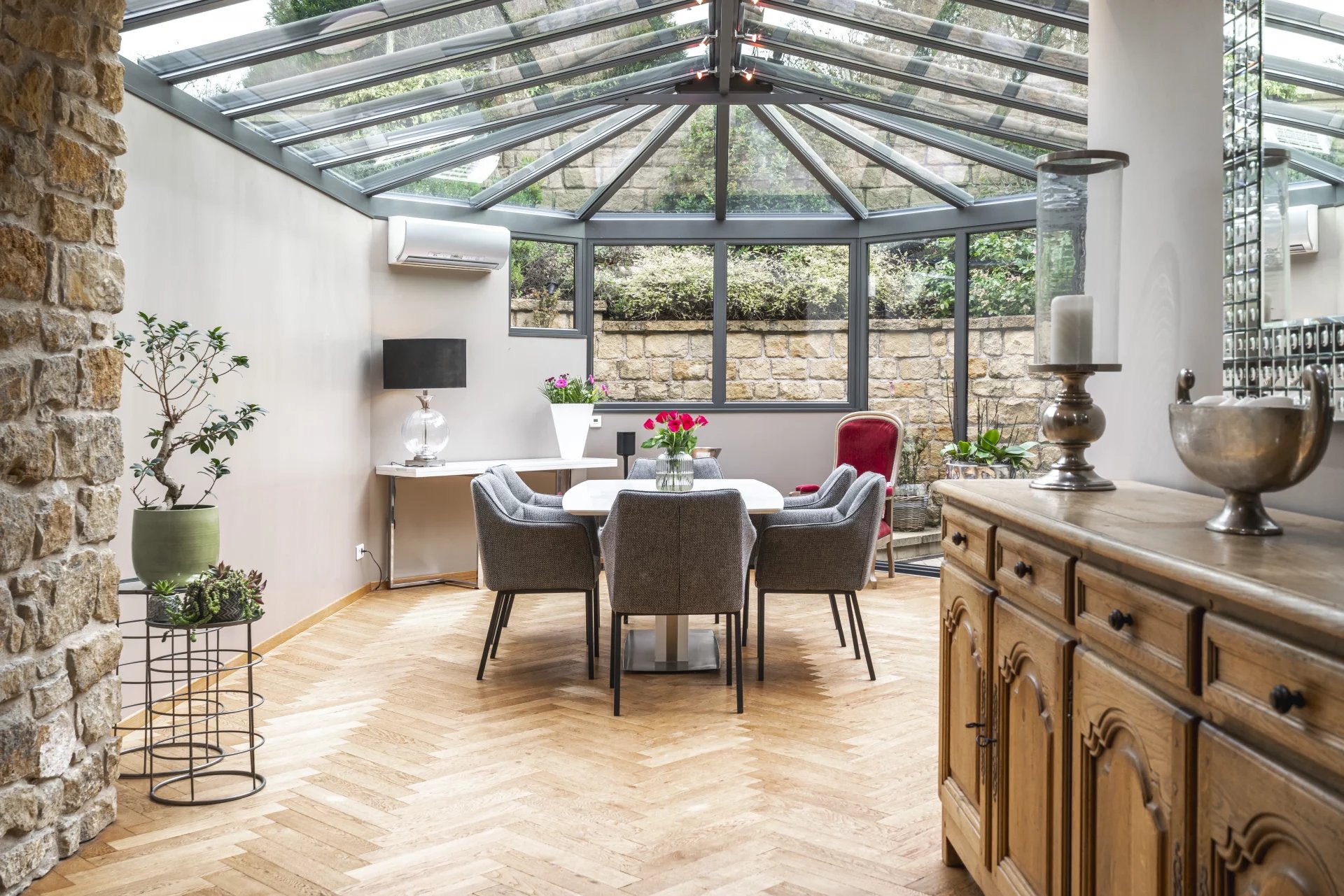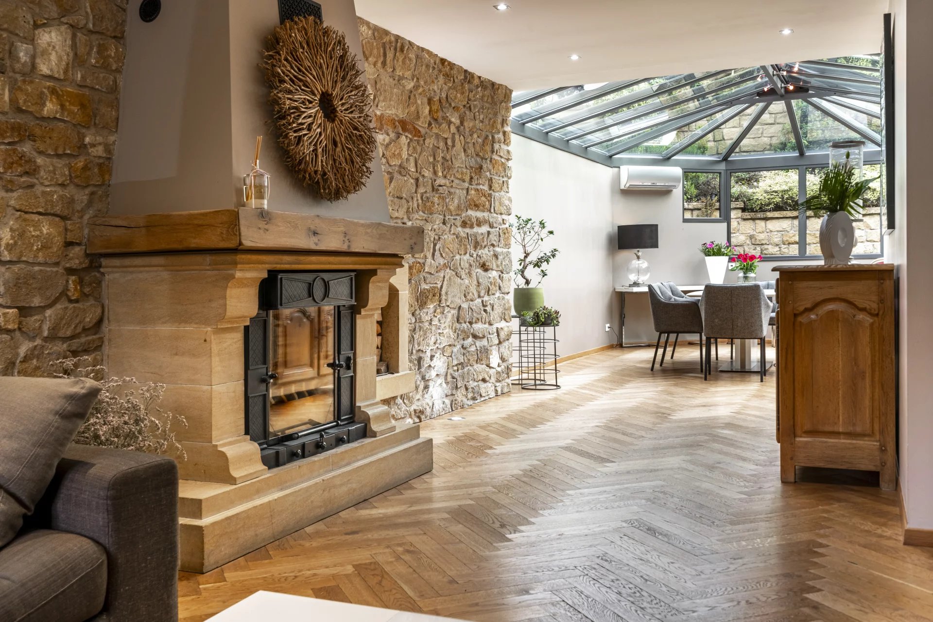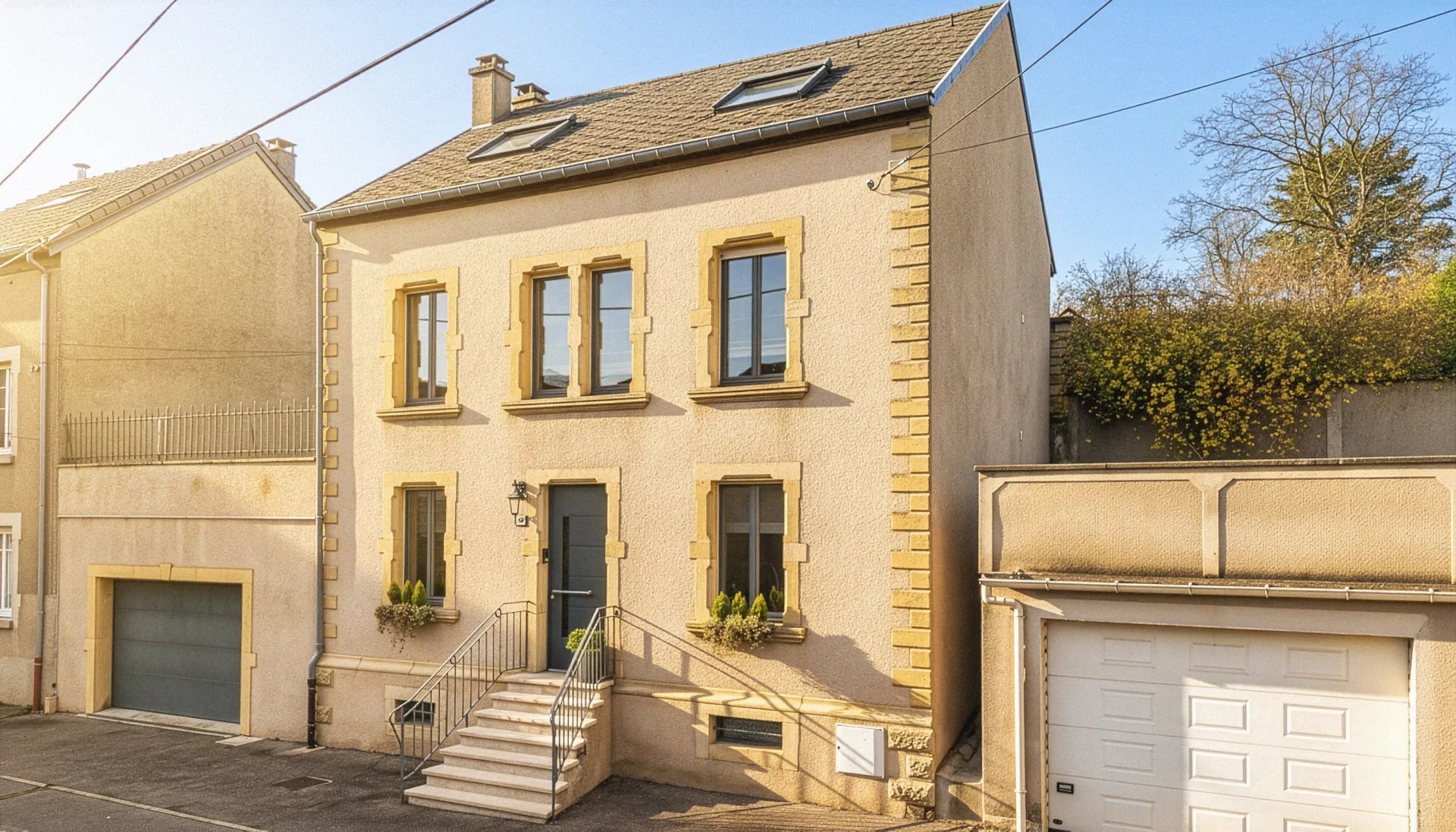 À Volmerange-les-Mines, cette demeure superbement rénovée déploie un charme intemporel associé à un confort moderne rarement atteint pour une maison de cette époque. Implantée sur un terrain exceptionnel de plus de 34 ares, elle offre un cadre de vie élégant, lumineux et ouvert sur la nature. La propriété développe 310,95 m² de surfaces totales, dont 181,60 m² habitables. S’ajoutent 29,04 m² d’annexes et 100,31 m² de surfaces non prises en compte selon la réglementation, mais parfaitement utilisables : volumes mansardés de la suite parentale, rangements, zone technique, caves, apportant une réelle valeur d’usage au quotidien. La maison présente un niveau de performance remarquable avec un DPE classé C en énergie et C en climat, résultat direct d’une rénovation de qualité ainsi qu’un mix énergétique équilibré. Les espaces de vie sont chaleureux et soigneusement aménagés. Le salon, habillé de pierre naturelle et d’un parquet massif, se prolonge vers une salle à manger élégante et une véranda plein est baignée de lumière. La cuisine ouverte offre un accès fluide aux terrasses et au jardin. Les étages accueillent quatre chambres, dont une suite parentale sous combles, avec salle d’eau privative et volumes mansardés authentiques. Une autre salle d’eau et une toilette séparée complètent les prestations. À l’extérieur, le parc entièrement privatisé déploie pelouses, arbres maturés, terrasses, boulodrome et une aire de jeux. Trois hangars viennent compléter la propriété, idéaux pour bricoleurs ou amateurs de chevaux. Le vaste garage de 75,22 m² permet d’accueillir jusqu’à quatre véhicules. Une propriété complète, raffinée, technique et rare, pensée pour ceux qui recherchent un environnement exceptionnel à quelques minutes du Luxembourg.