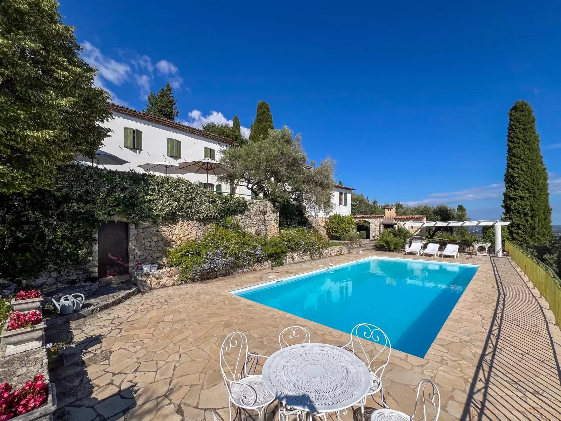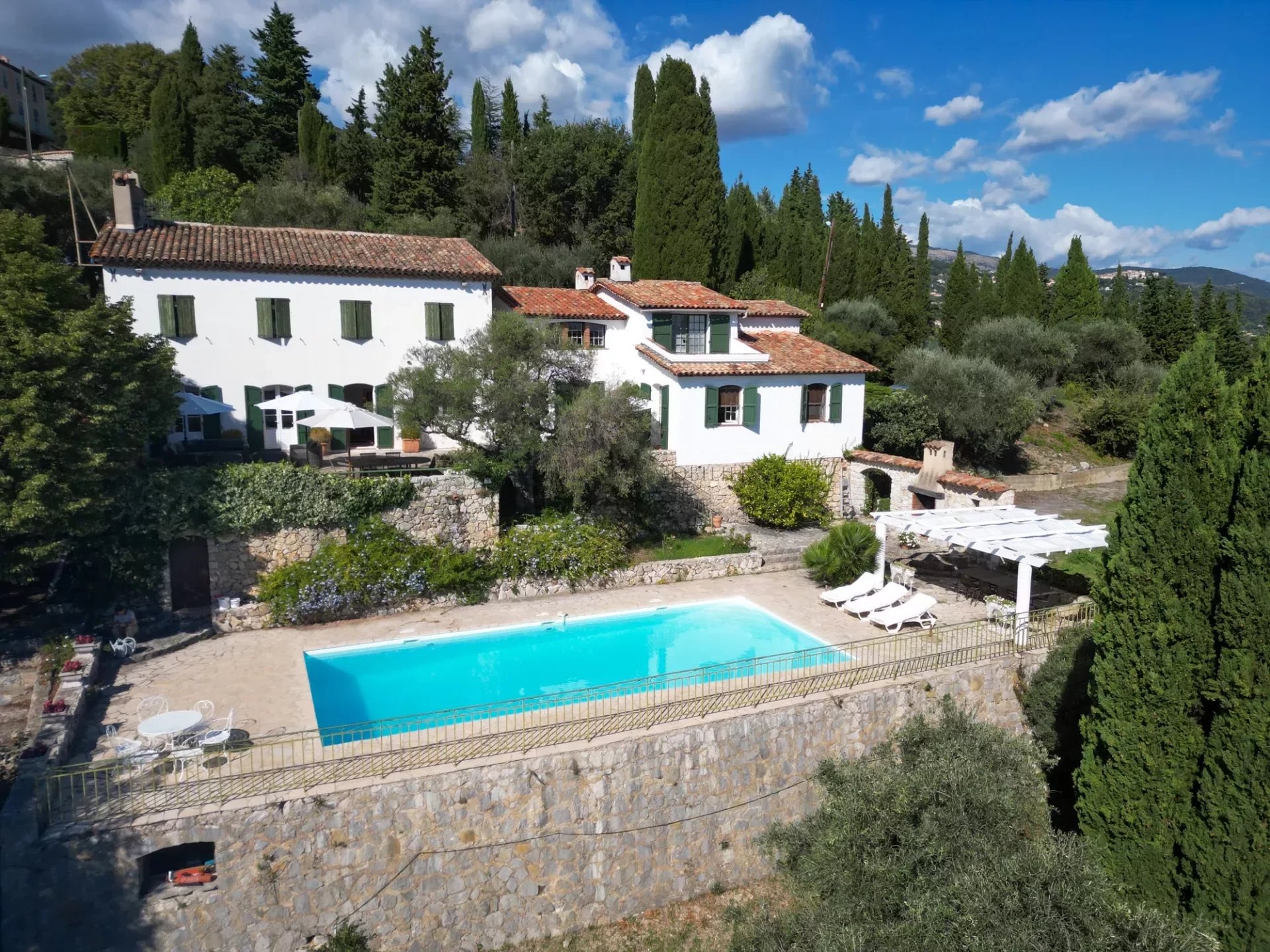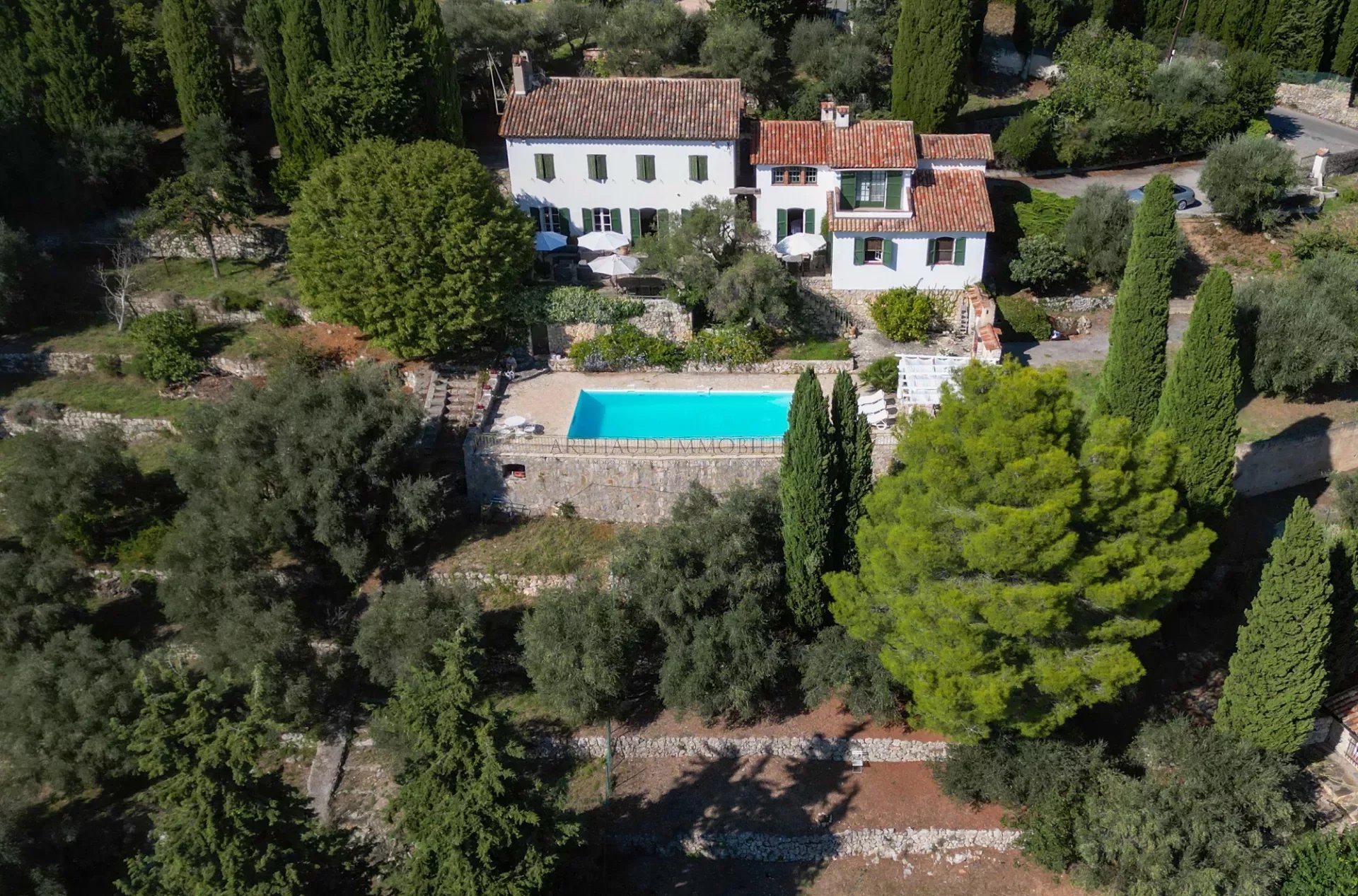 En position dominante sur un terrain de 5000 m² arboré de 54 oliviers avec une grande piscine et une vaste terrasse, cette demeure est une véritable invitation au bien-être.