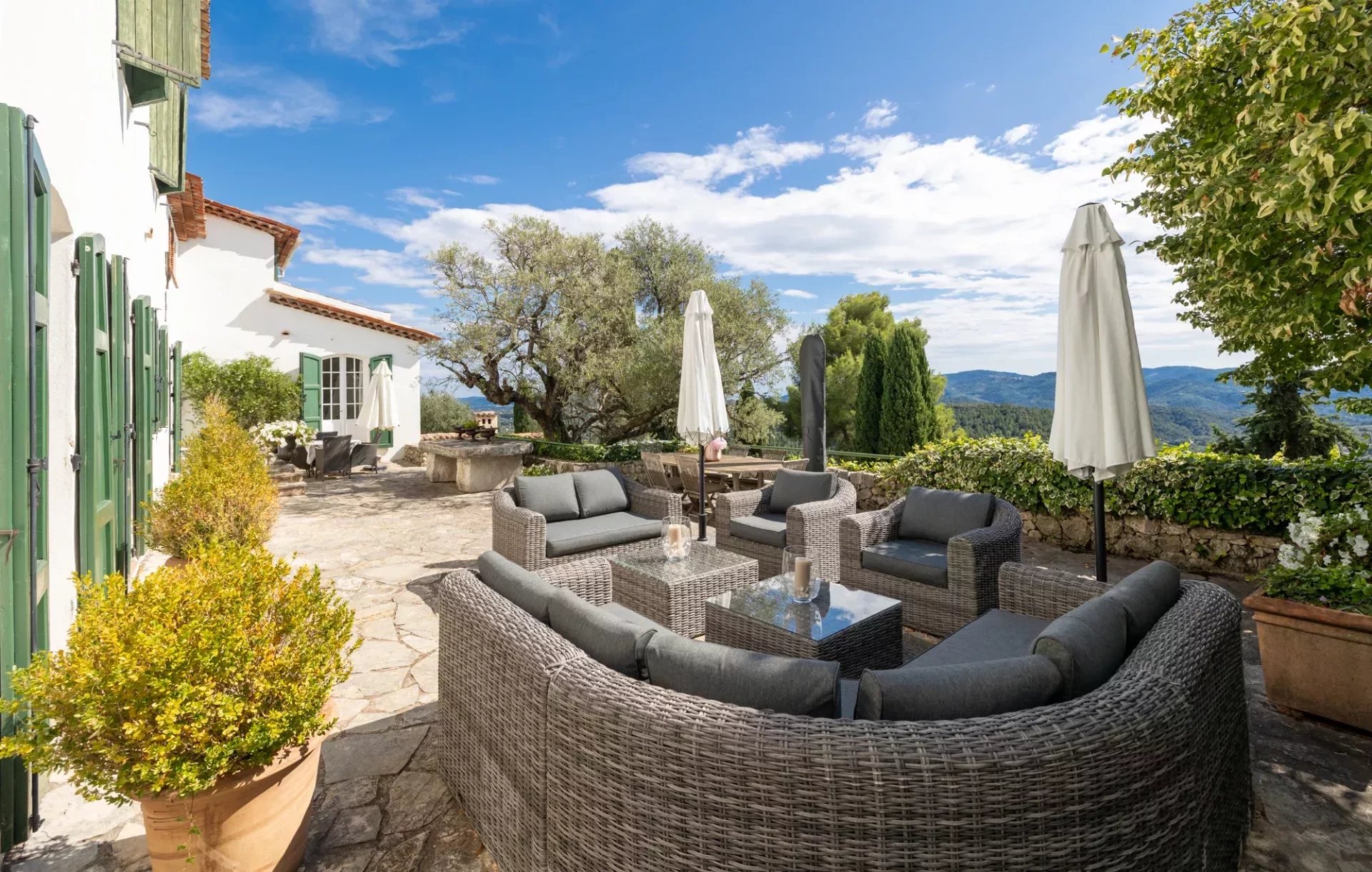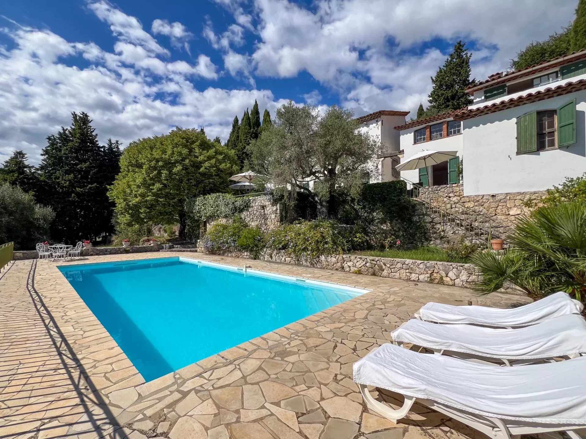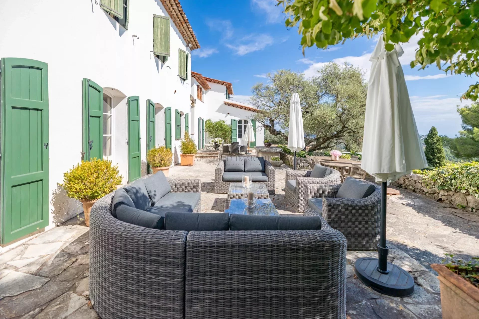 En position dominante sur un terrain de 5000 m² arboré de 54 oliviers avec une grande piscine et une vaste terrasse, cette demeure est une véritable invitation au bien-être.