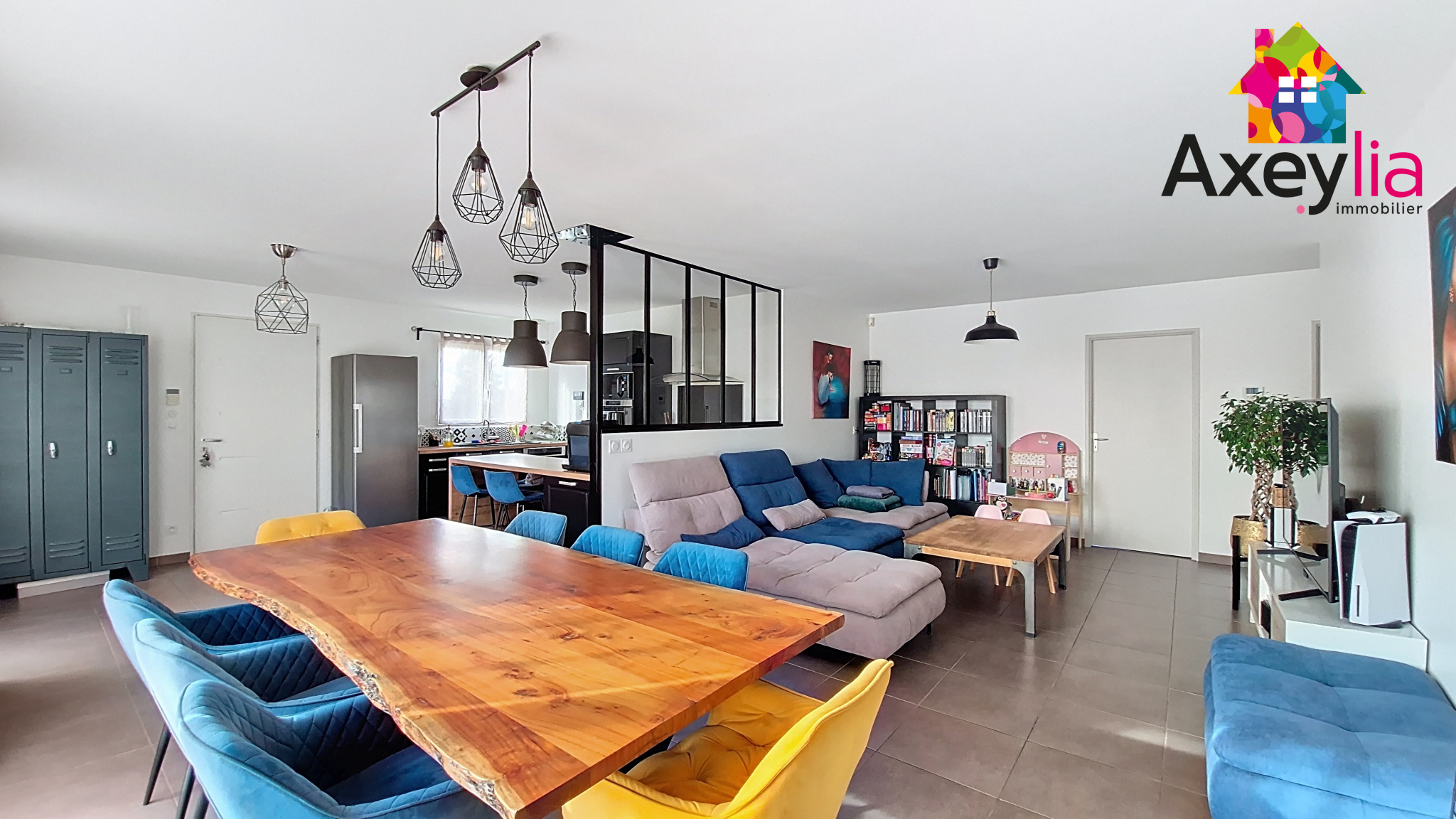 INFOS APPELEZ HERVE AU 06.07.77.31.39 - A VENDRE - VOUGY - AXEYLIA IMMOBILIER, L'AGENCE À NOUVELLE GÉNÉRATION, MEMBRE DU RÉSEAU EXPERTIMO vous propose: maison de plain-pied comprenant cuisine équipée ouverte sur séjour climatisé, 2 chambres, salle de bains, WC, suite parentale avec salle d'eau et dressing, buanderie avec WC et garage. Terrain de 768m2 clos avec portail coulissant motorisé, terrasse, car-port et petite dépendance. Panneaux photovoltaïques pour autoconsommation. Maison dans rue très calme à moins de 10mn de KNDS, Michelin et 15mn du Centre Hospitalier de Roanne.