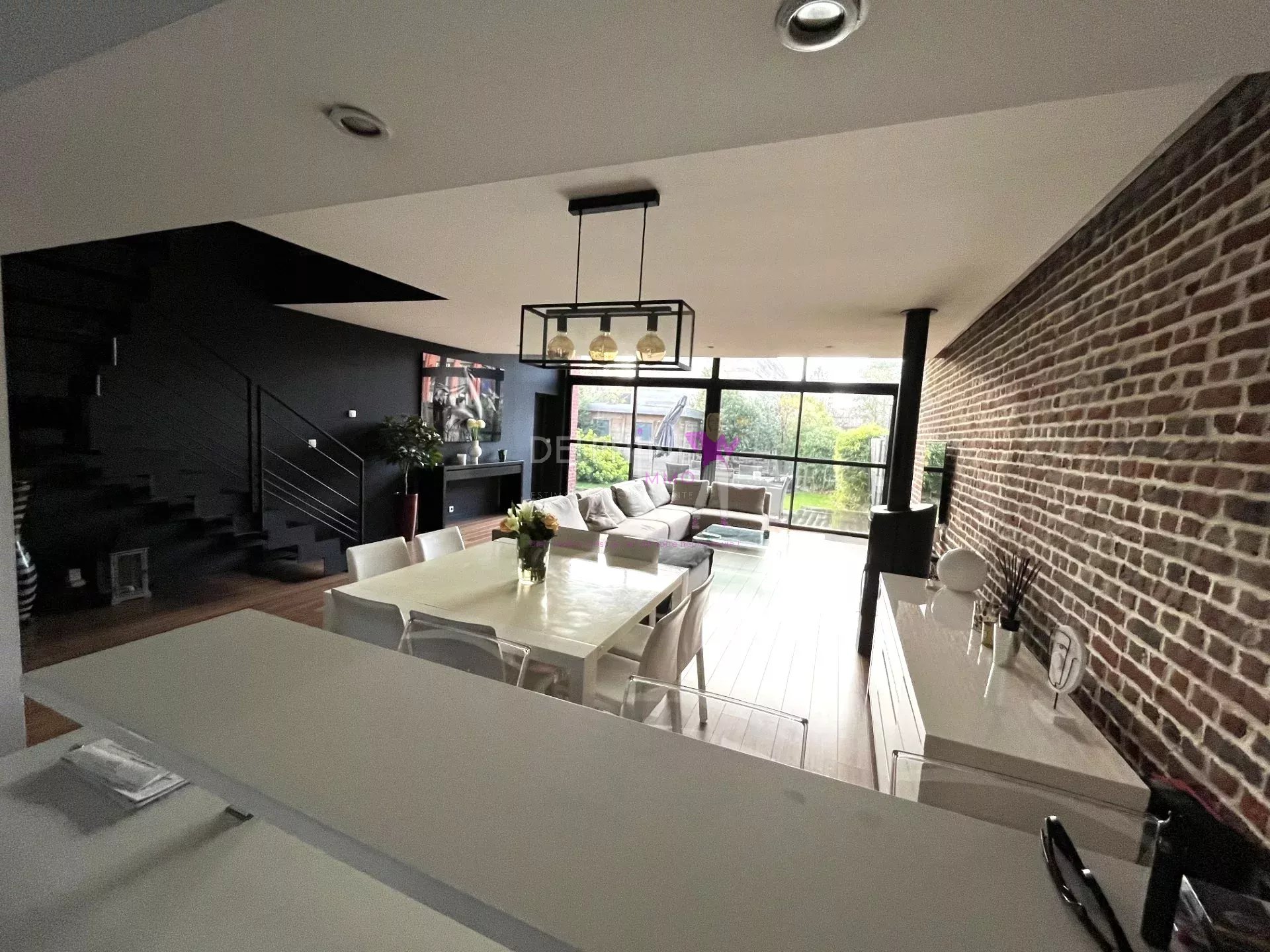 Au sein d'une petite copropriété calme et sécurisée, Splendide maison type loft de 185 m², en semi plein pied, avec jardin et places de parking, à deux pas du tram "Ma Campagne" et à la lisière de Mouvaux.