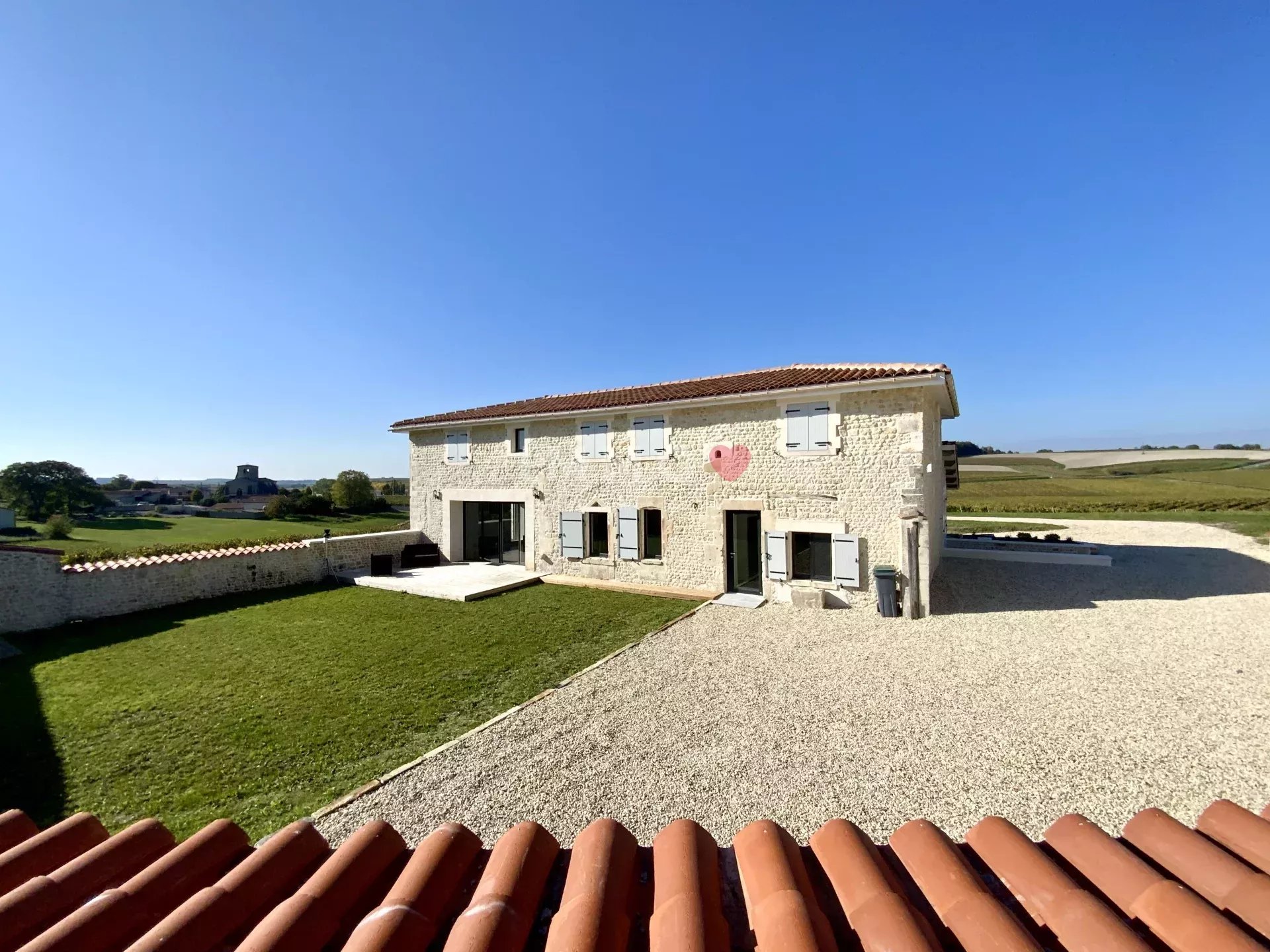 Nichée en hauteur, au cœur des terres nobles de la Grande Champagne, cette authentique Charentaise de 250 m² offre un panorama à 360° sur les vignes environnantes et un cadre de vie rare, calme et sans vis-à-vis.