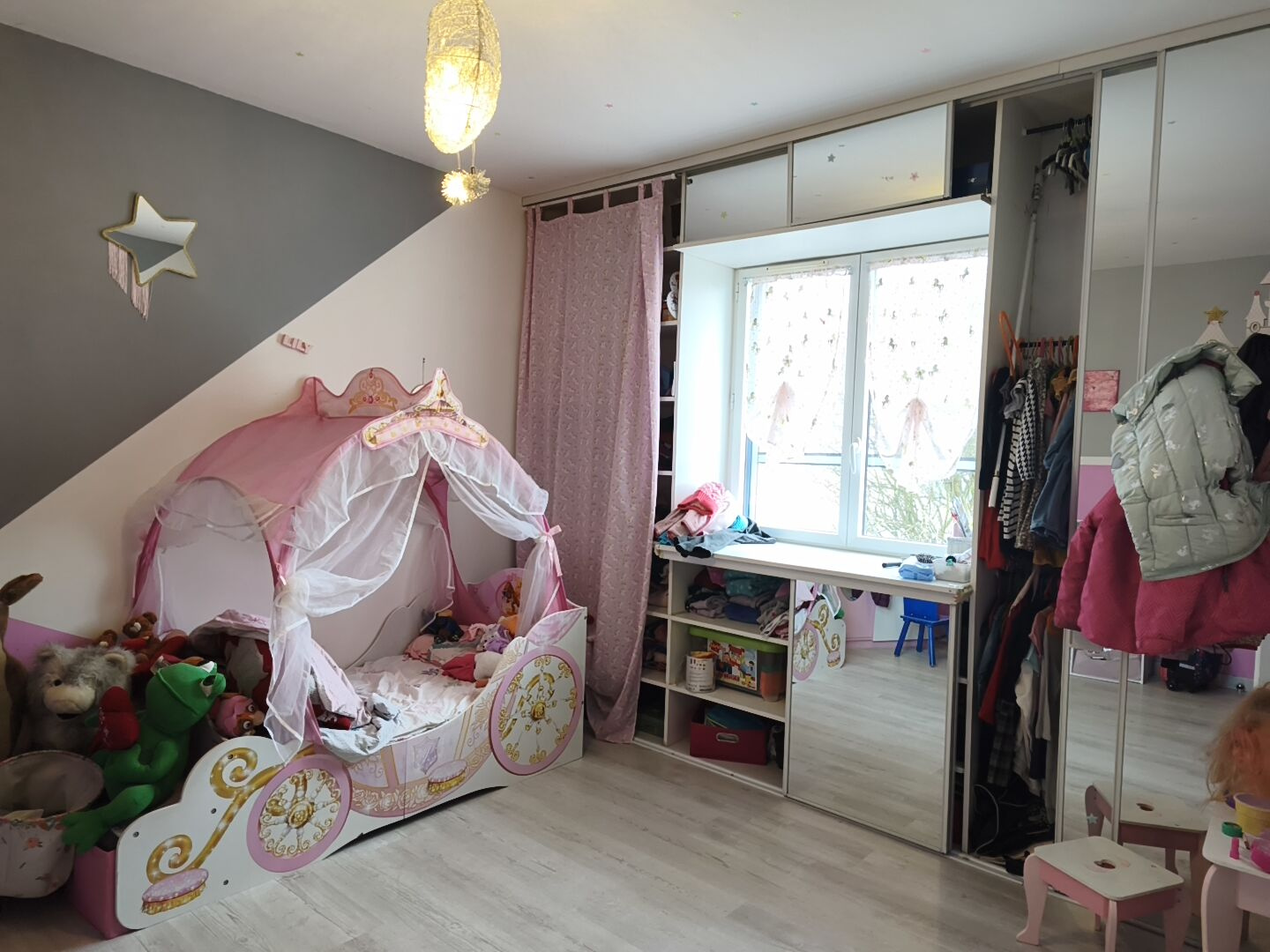 A l'étage, vous trouvez 3 chambres, une mezzanine, une salle de bains (avec douche et baignoire) dont une chambre parentale de 40 m2 avec dressing et coin bureau.
