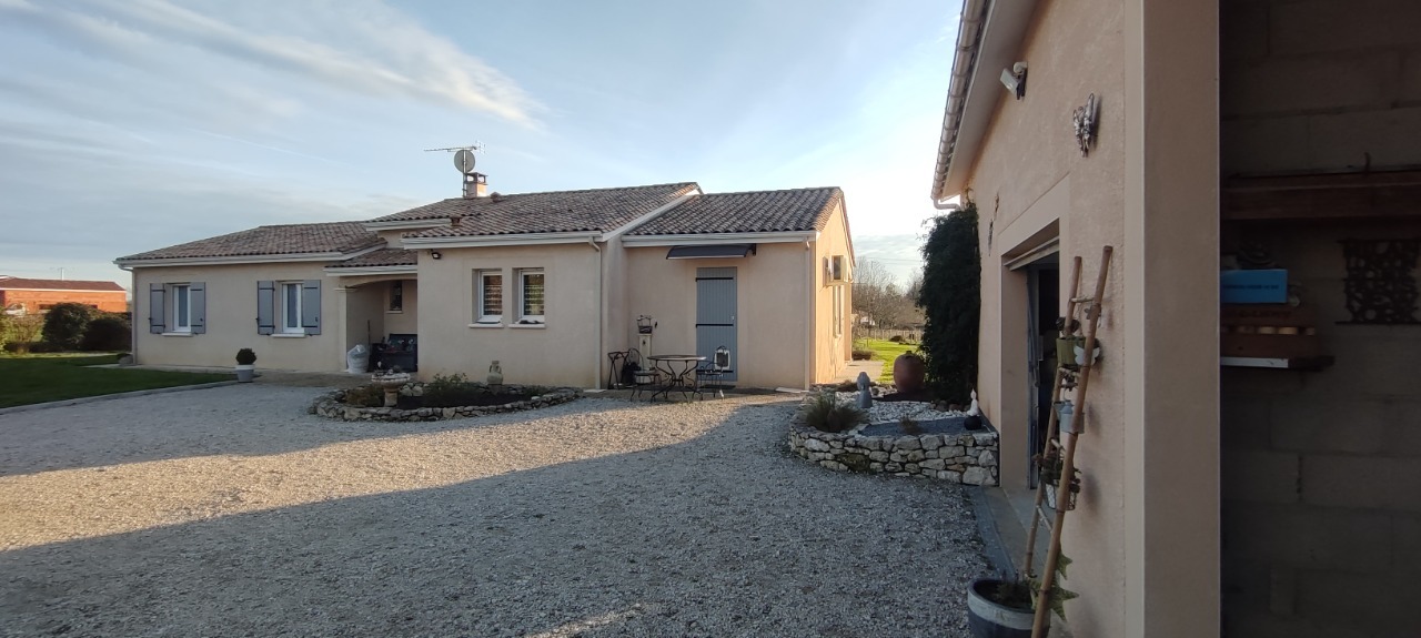 A 5 mn de Lalinde, jolie maison fonctionnelle et lumineuse de 130 m² habitables de plain-pied, en parfait état et très bien équipée :