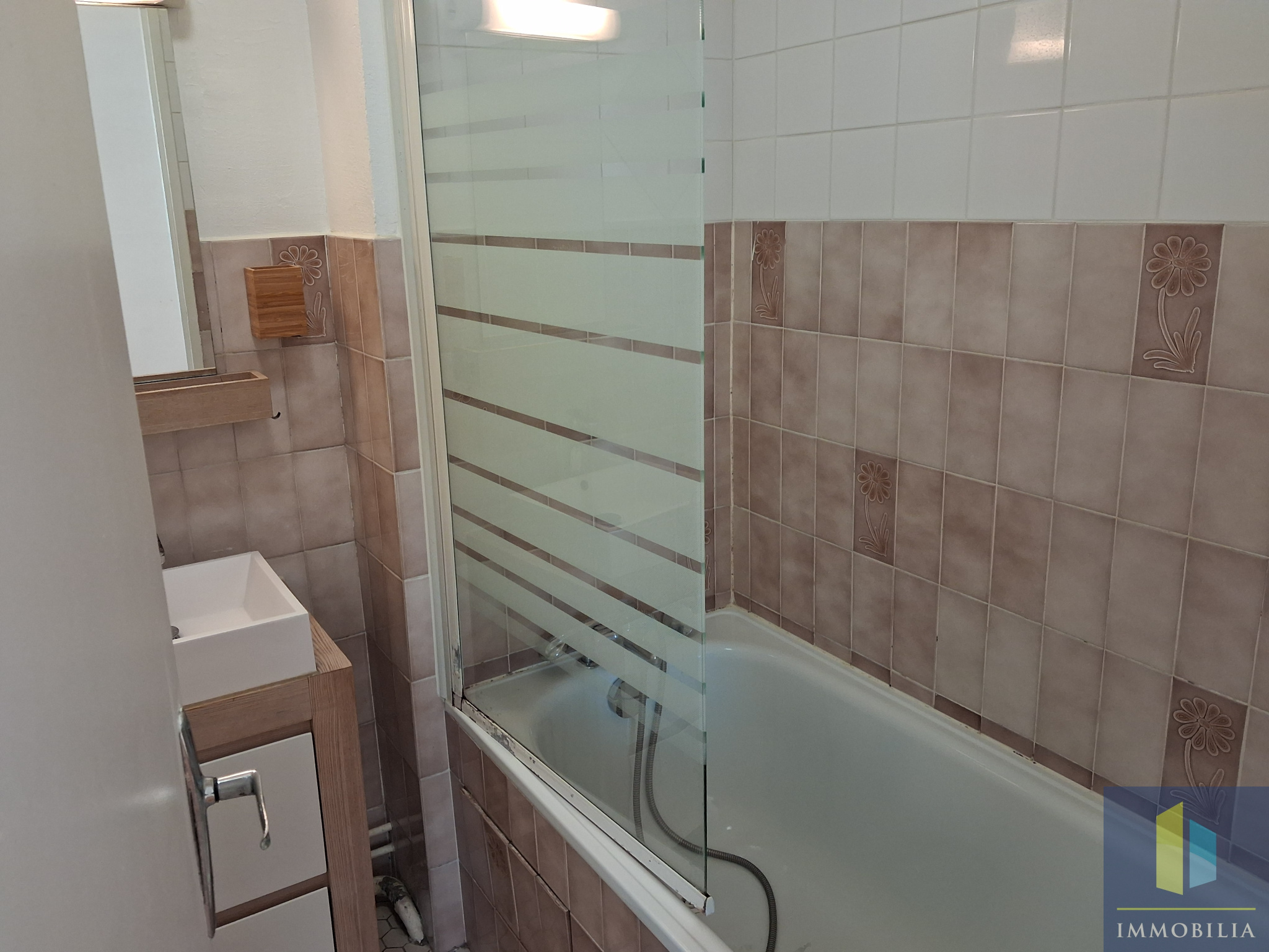 Entrée, placard, séjour, salle de bains, cuisine. Lumineux exposition Ouest, dernier étage (3/3) DPE E - Chauffage gaz -