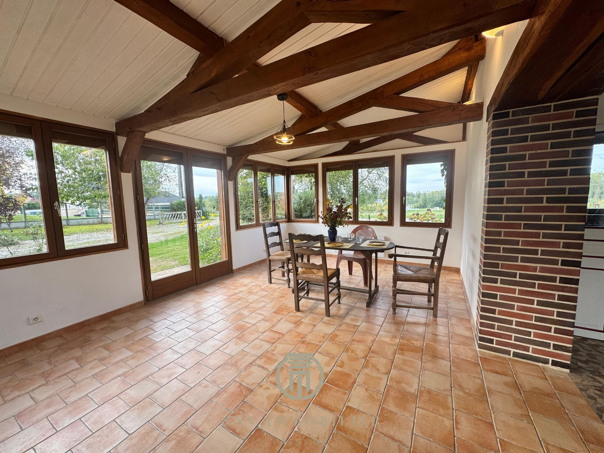 - une véranda traversante, utilisée en jolie salle à manger très lumineuse